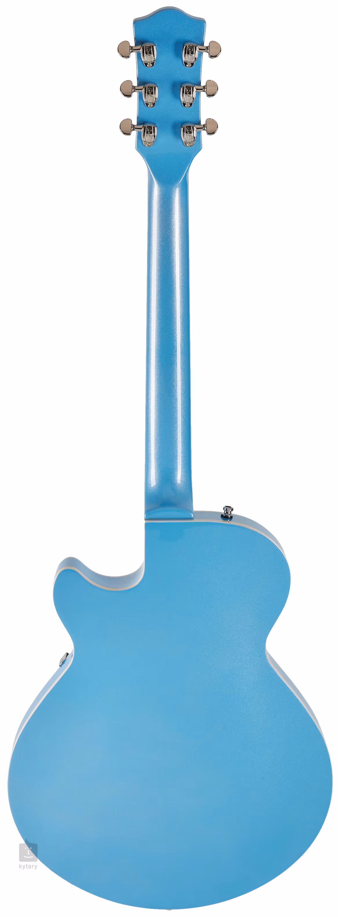 Die Montreal Premiere LTD Imperial Blue ist eine Semi-Hollowbody-Gitarre aus der limitierten Serie von Godin, die durch ihr glänzendes Finish und ihre präzise Verarbeitung sofort ins Auge fällt. Der Korpus der Gitarre besteht aus einer Frontplatte, einer Bodenplatte und Zargen aus laminierter kanadischer Massivkirsche und einem Zedernmittelblock. Auf den Mahagoni-Hals ist ein Richlite-Composite-Griffbrett mit zweiundzwanzig Bünden geklebt. Die Orientierung auf seiner Oberfläche wird durch Positionsblöcke erleichtert.
