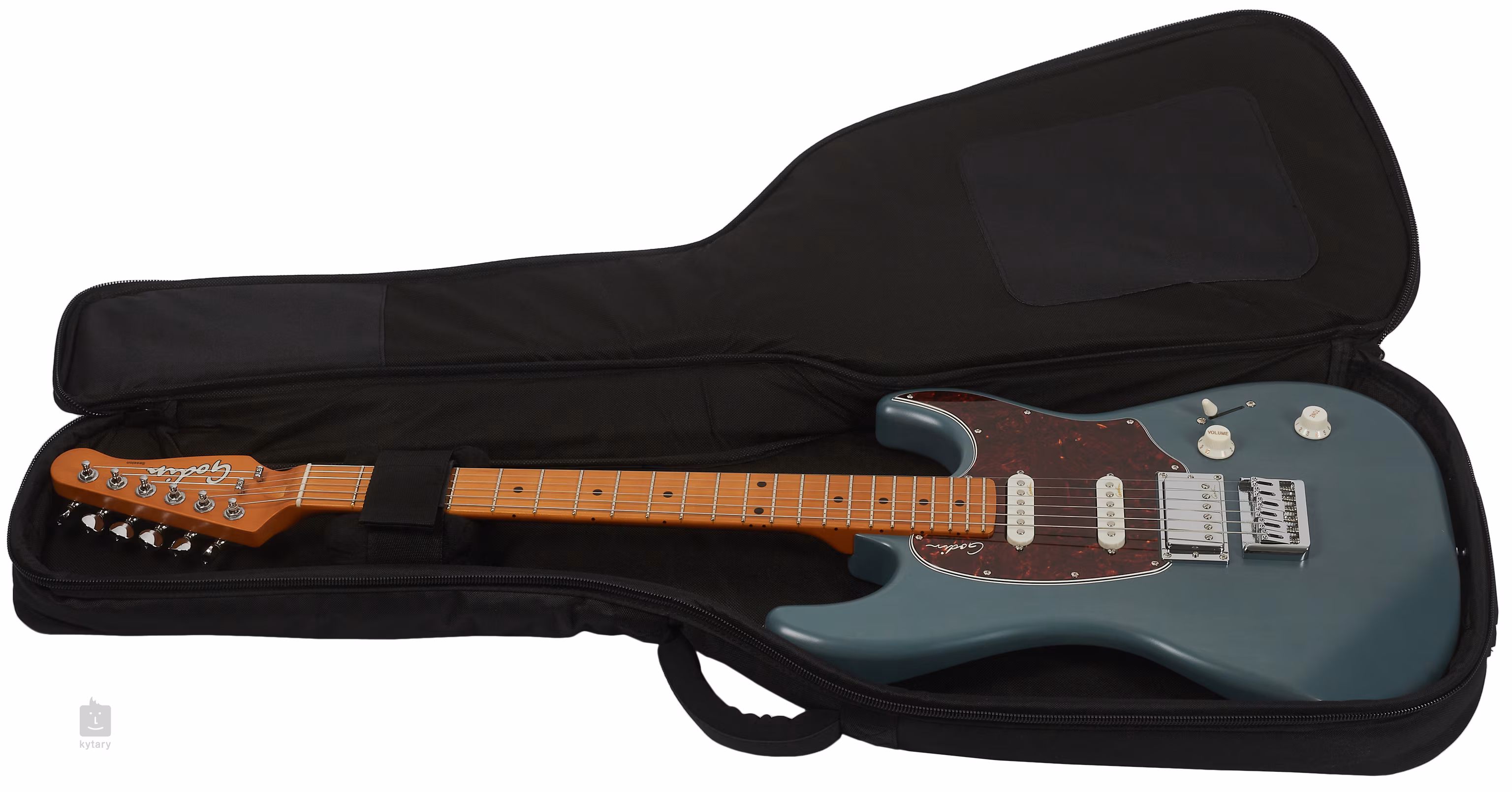 Die Saiten werden in Stimmmechaniken mit einem Übersetzungsverhältnis von 18:1 und einer soliden Brücke über einen Graphtech-Nullbund gehalten. Die schöne Verarbeitung wird durch ein seidenmattes Ultra-Thin-Finish in Arctik Blue und ein praktisches Schlagbrett aus Schildpatt-Imitat akzentuiert. Die Gitarre wird in einem Gigbag geliefert.