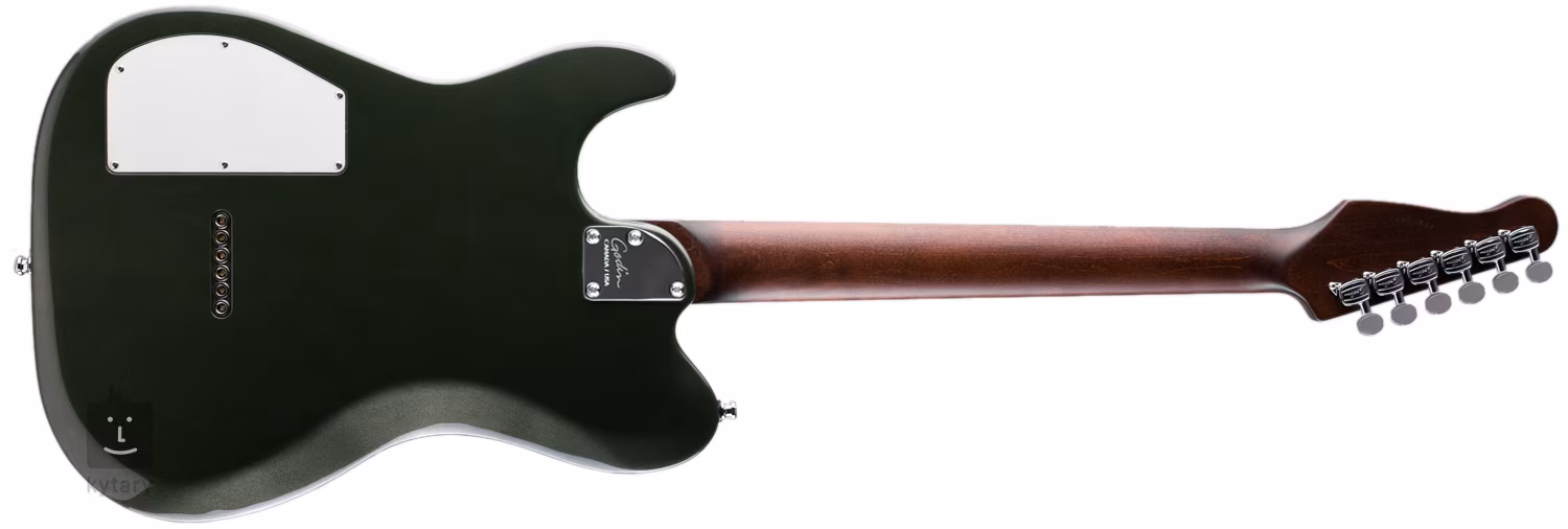 Die Saiten sind in Stimmmechaniken mit einem Übersetzungsverhältnis von 18:1 und einem verstellbaren Custom T-Saitenhalter mit Messingsätteln untergebracht. Ein Pickguard schützt den Lack des Instruments vor Kratzern bei kräftigem Plektrumspiel. Die glänzende Oberfläche in Desert Green verstärkt die optische Wirkung. Die Gitarre wird in einem Gigbag geliefert.