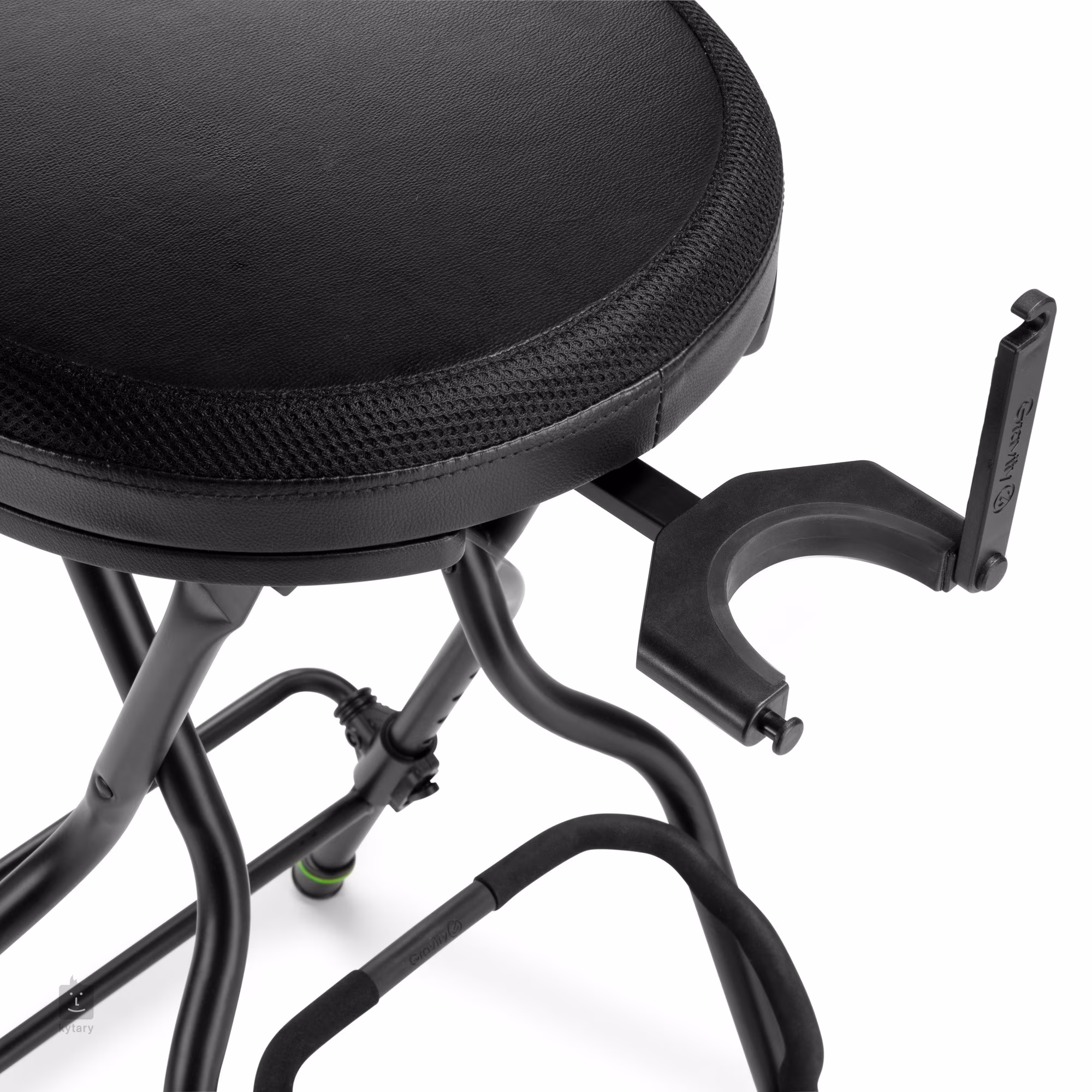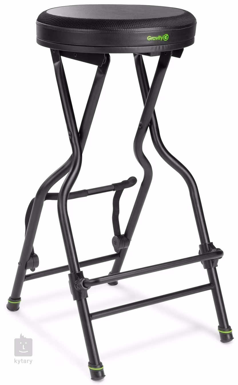 Dieser durchdachte Gitarrenstuhl bietet Ihnen neben einer bequemen Sitzgelegenheit unter anderem einen Gitarrenhalter und eine verstellbare Fußstütze. Die Sitzfläche mit einem Durchmesser von 340 mm besteht aus einer Kombination aus Stoff und hochwertigem Kunstleder, wodurch sie rutschfest und atmungsaktiv ist. Die Konstruktion des Ständers besteht aus einer Kombination aus Aluminiumdruckguss und Stahl, die nicht nur Festigkeit und Stabilität, sondern auch ein geringes Gewicht gewährleistet. Bei Bedarf kann der Stuhl auf ein kompaktes Maß zusammengeklappt werden, was ihn perfekt für häufige Reisen macht. An der Seite befindet sich eine ausziehbare Gitarrenhalterung, die bei Bedarf komplett versteckt werden kann. Der Ständer kann die meisten handelsüblichen akustischen und elektrischen Gitarren leicht und sicher halten. Eine weitere Besonderheit dieses Stuhls ist die verstellbare Fußstütze (von 180 - 300 mm), die jederzeit ein bequemes Spielen garantiert.