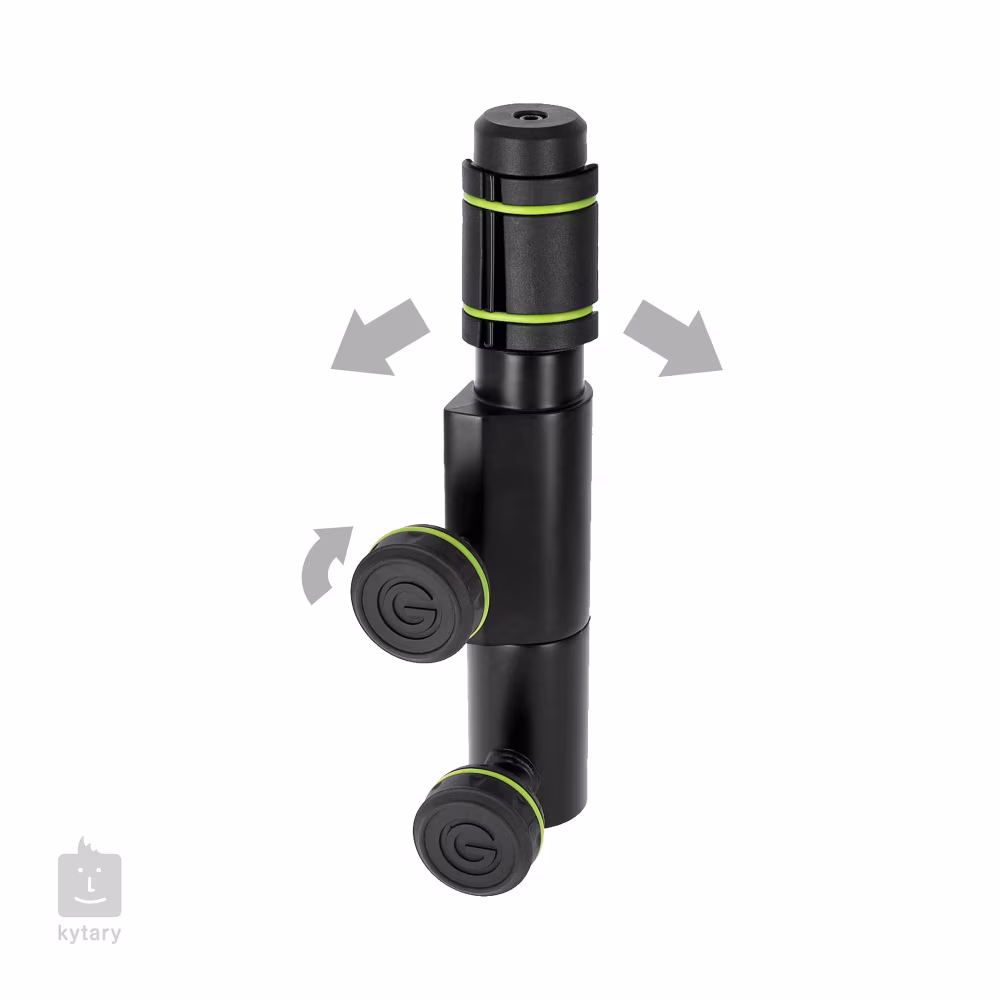 Wie funktioniert er? Das sich ausdehnende Klappensystem mit robusten Komponenten wird einfach durch Drehen der oberen Einstellschraube eingestellt. Dadurch wird der Lautsprecher sicher gehalten und ein Kippen oder Wackeln verhindert. Der Adapter wird mit der unteren Stellschraube am Stativ befestigt, was wiederum für einen festen Halt auf dem Stativ sorgt.
