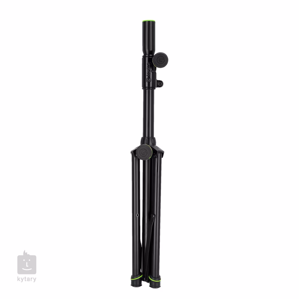 Kompakter Lautsprecherständer mit Aluminiumkonstruktion, verstellbarer Höhe und austauschbaren Farbringen.