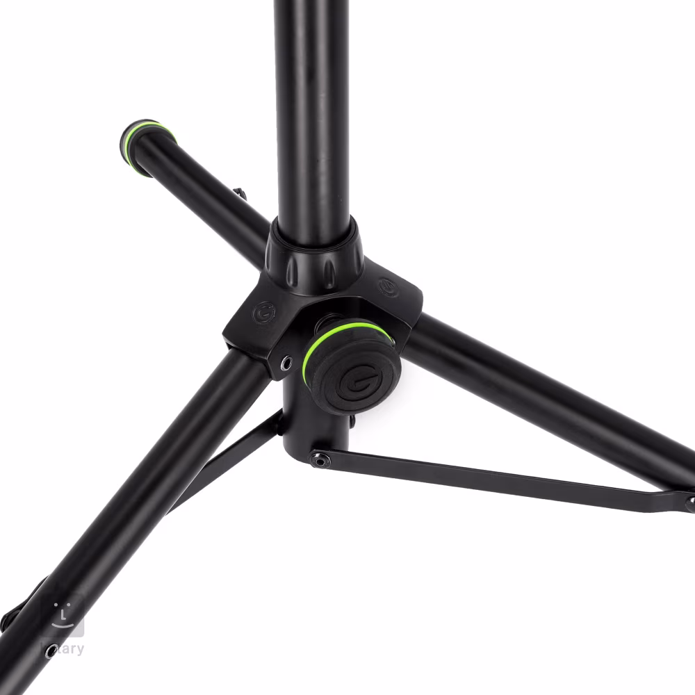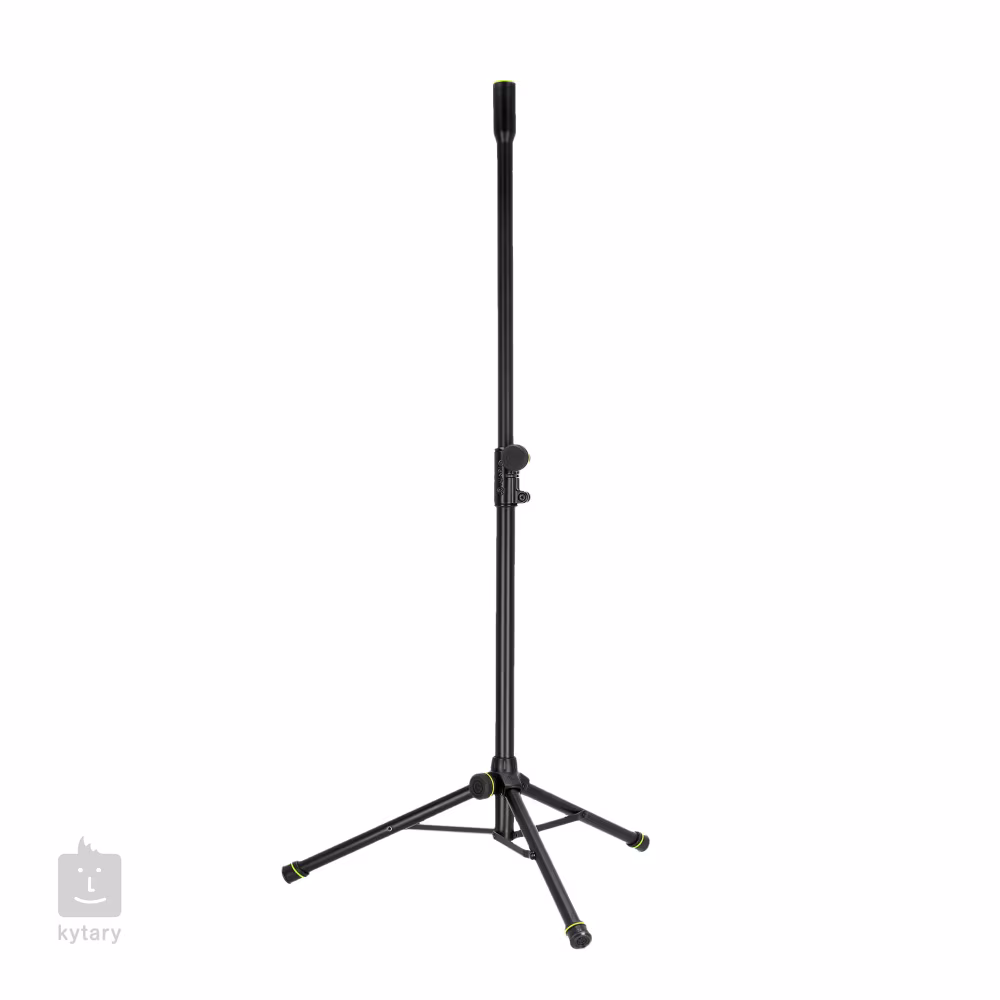 Kompakter Lautsprecherständer mit Aluminiumkonstruktion, verstellbarer Höhe und austauschbaren Farbringen.