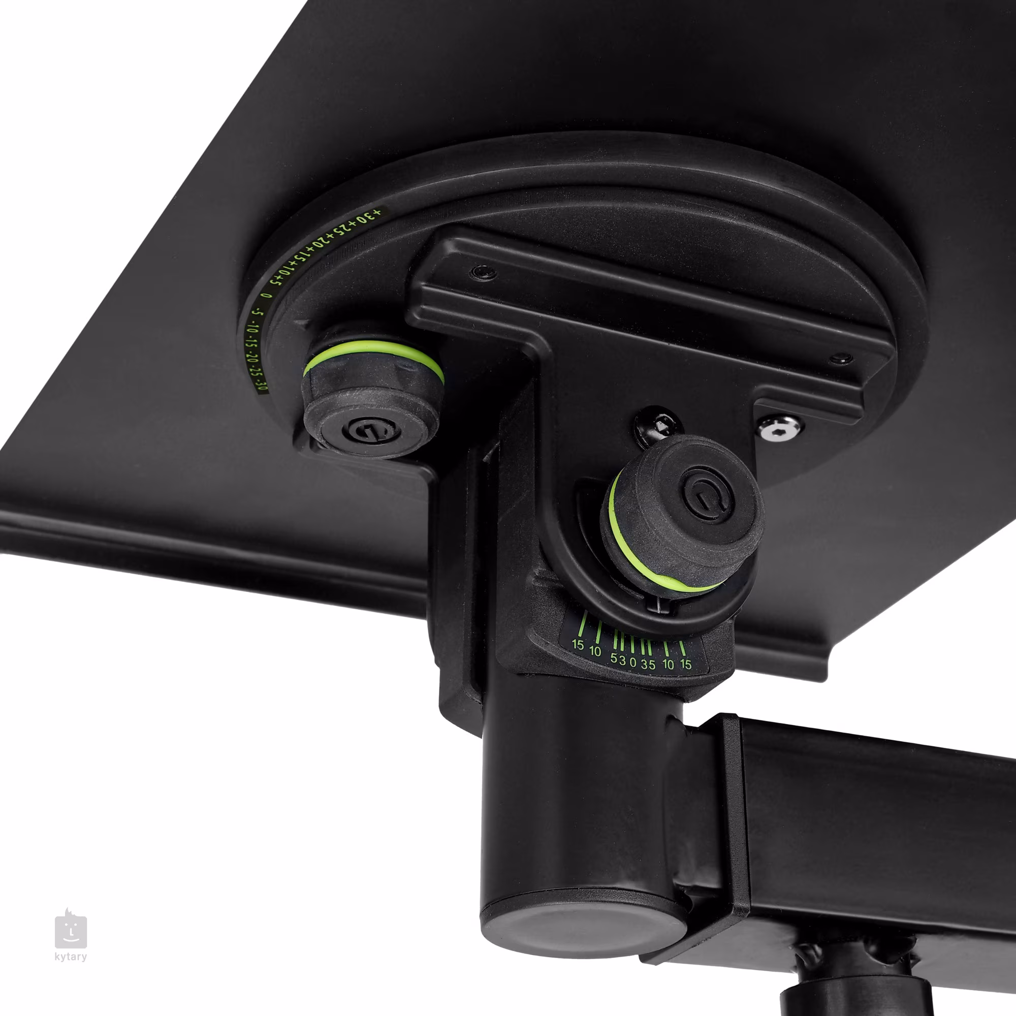 Die 250 x 250 mm große Auflagefläche kann um 30° gedreht und um bis zu 15° in beide Richtungen geneigt werden. Außerdem sorgen die EVA-Polsterung und der Kippschutz an der Vorderseite der Auflagefläche dafür, dass Ihre wertvollen Monitore auch bei maximaler Neigung immer sicher an ihrem Platz bleiben.