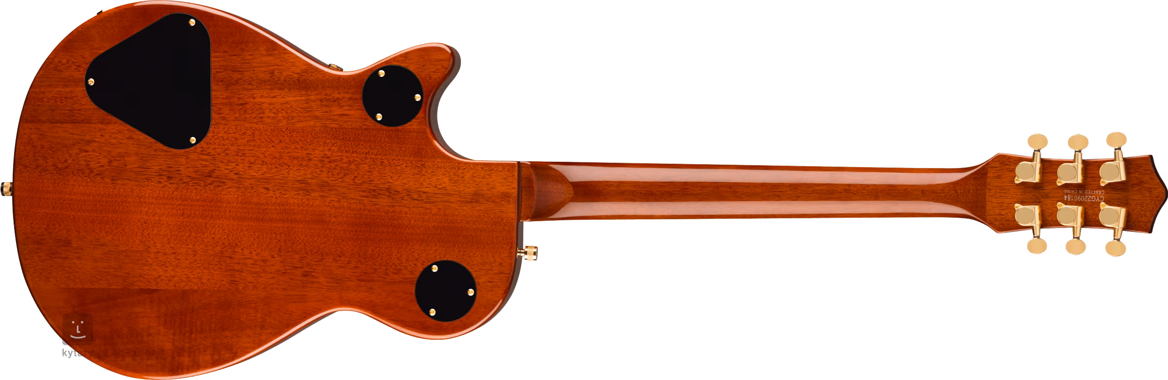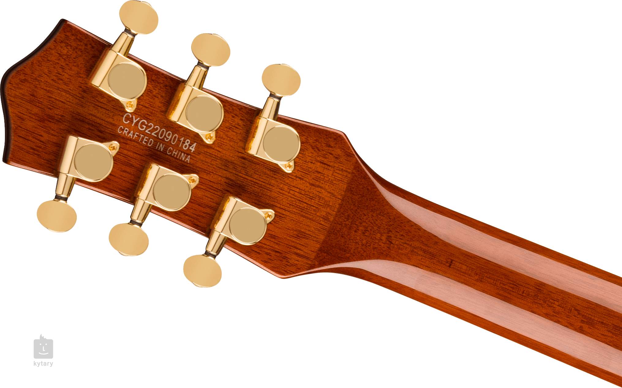 Die Saiten werden in den Druckguss-Stimmmechaniken des Unternehmens und durch den Adjusto-Matic-Saitenhalter im Bigsby B70-Tremolo montiert. Das stilvolle Design des Instruments wird durch das umlaufende Binding des Korpus mit schwarzen und weißen Linien, die goldene Hardware und das goldene Plexi-Pickguard mit schwarzem Gretsch-Logo unterstrichen.