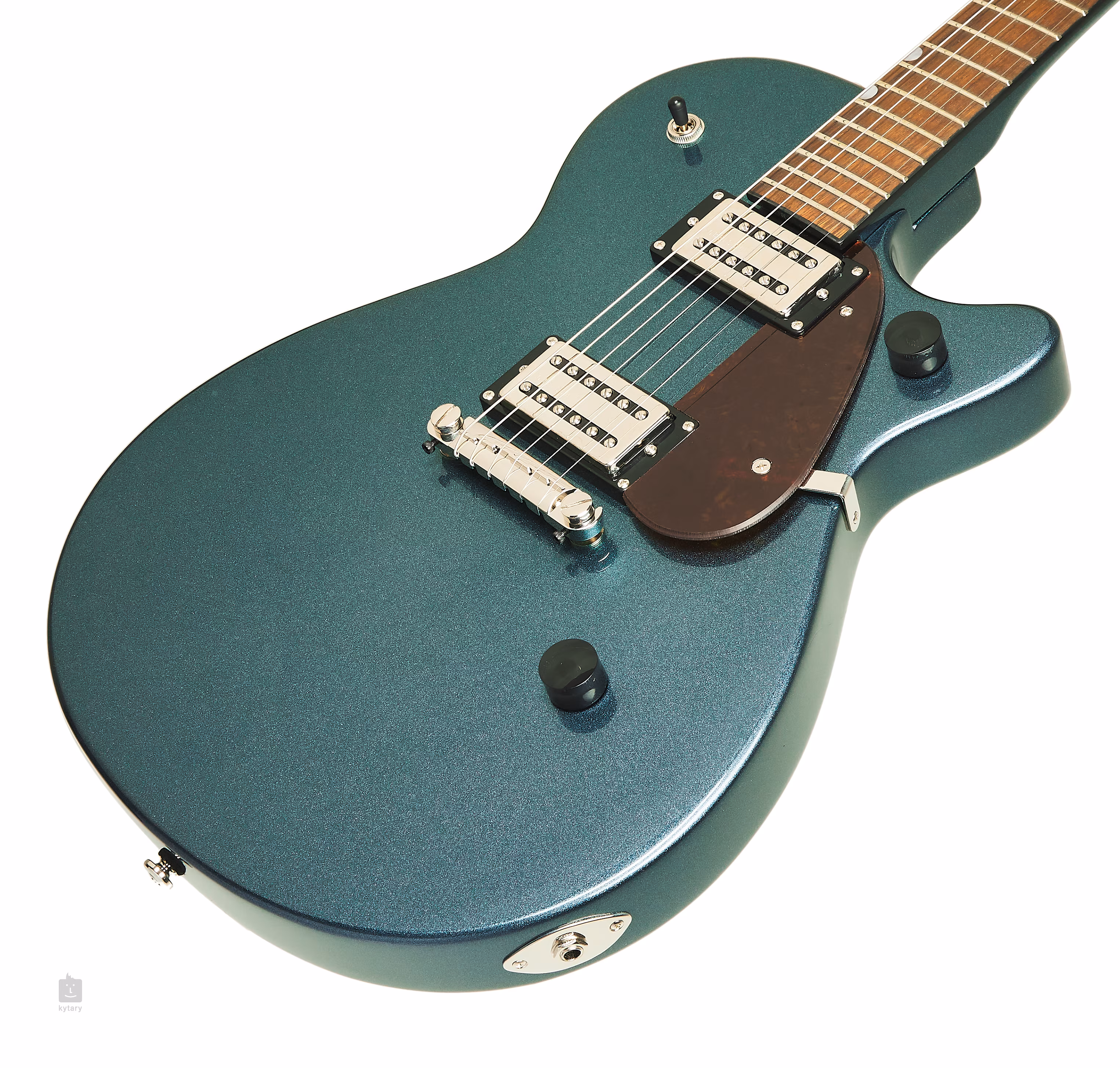 Zwei Broad'Tron-Humbucker verleihen der Gitarre einen Sound mit kräftigen Bässen und druckvollen Mitten. Lautstärkepotentiometer, Tonregler und ein dreistufiger Tonabnehmerschalter dienen zur Einstellung. Die Saiten werden in die Die-Cast-Stimmmechaniken des Unternehmens und einen Wrap-Around-Saitenbieger montiert. Das sparsame Design des Instruments wird durch das fast schon obligatorische Schlagbrett aus Schildpatt-Imitat ergänzt.