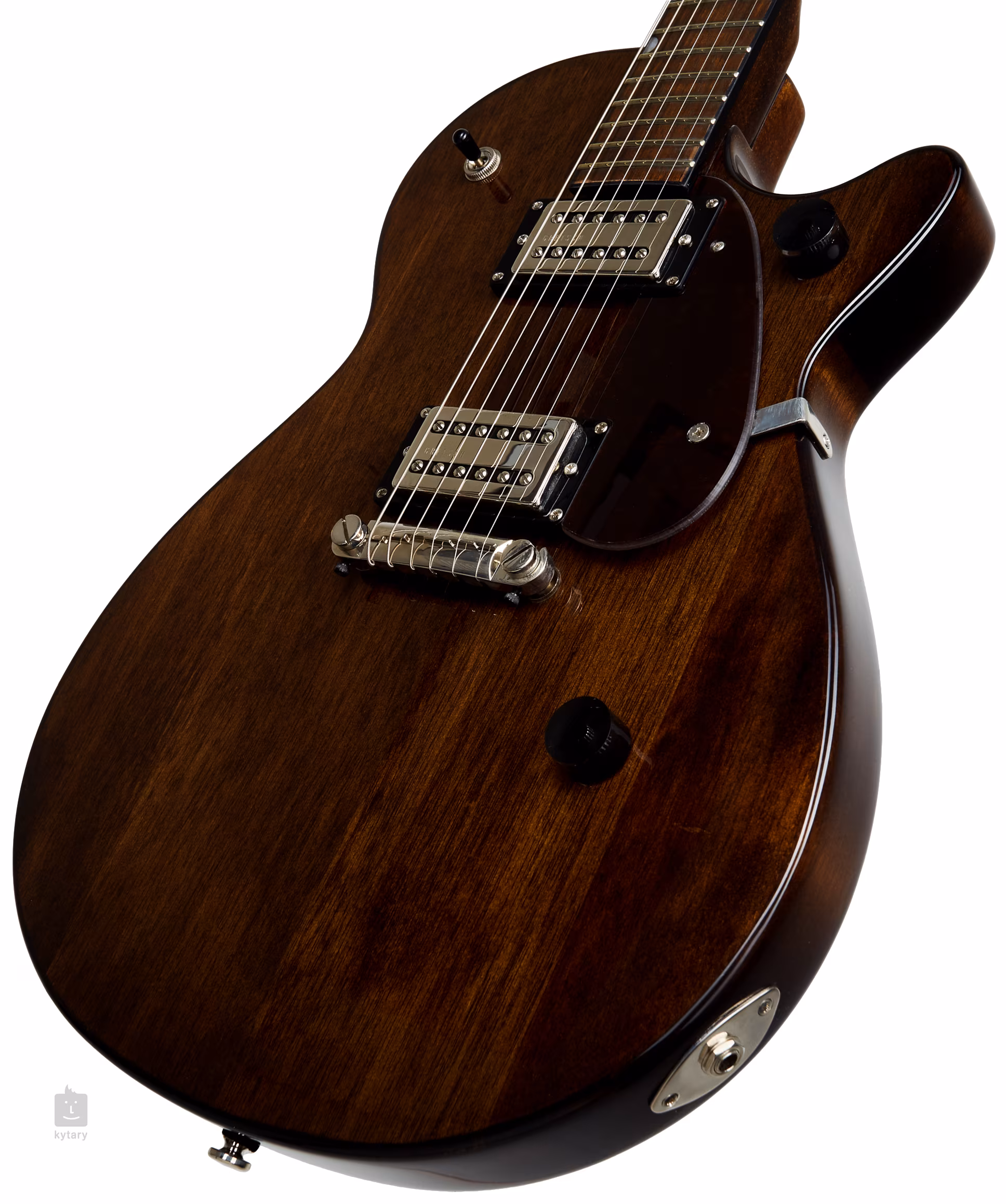 Zwei Broad'Tron-Humbucker verleihen der Gitarre einen Sound mit kräftigen Bässen und druckvollen Mitten. Lautstärkepotentiometer, Tonregler und ein dreistufiger Tonabnehmerschalter dienen zur Einstellung. Die Saiten werden in die die-cast-Stimmmechaniken des Unternehmens und einen Wrap-Around-Saitenbieger montiert. Das sparsame Design des Instruments wird durch das fast schon obligatorische Schlagbrett aus Schildpatt-Imitat ergänzt.