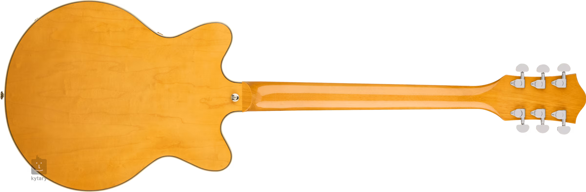 Die Saiten werden über einen Knochenbund in den Druckguss-Stimmmechaniken des Unternehmens und über ein Adjusto-Matic-Saitenhalter in einem V-Stoptail-Saitenhalter verankert. Das klassische, ansprechende Design der Gretsch-Gitarren wird durch eine Reihe stilvoller Merkmale unterstrichen - von der gewölbten Korpuskonstruktion mit F-Löchern, dem eleganten Binding mit dezenter Patina (Aged White), der Nickel-Hardware bis hin zum dreilagigen Schlagbrett aus Schildpatt-Imitat mit goldenem Gretsch-Logo.