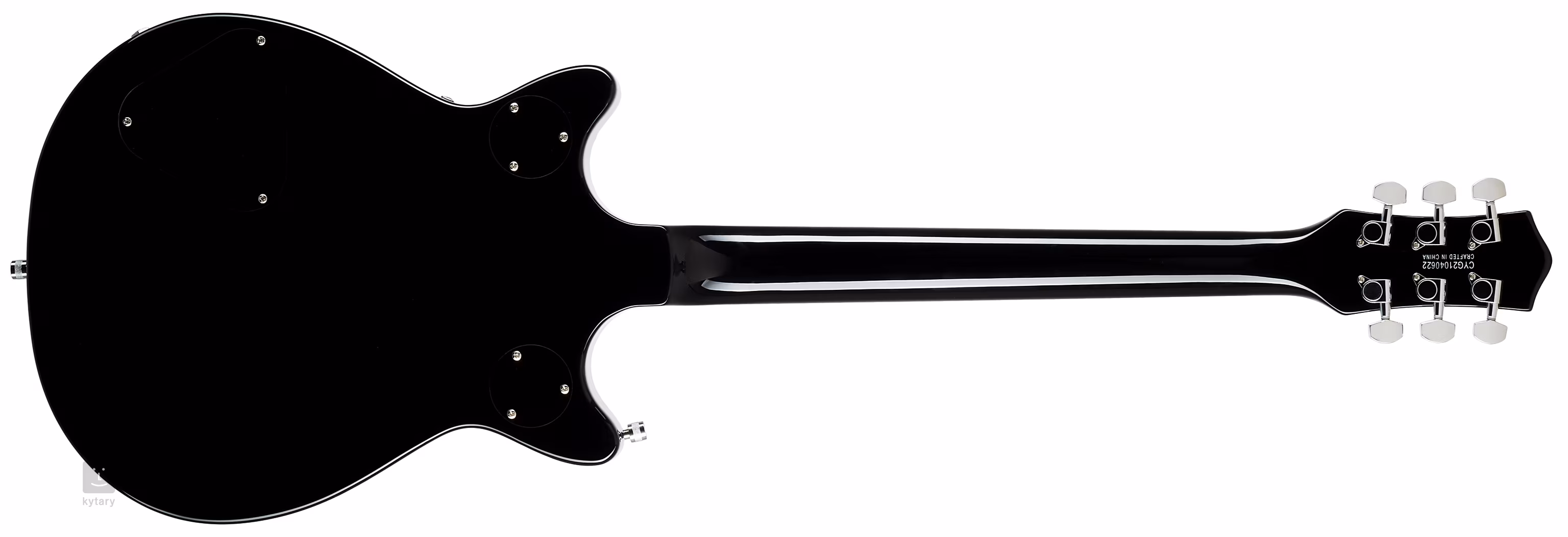 Die Saiten sind in den Die-Cast-Mechaniken des Unternehmens, dem einstellbaren Adjusto-Matic-Saitenhalter und den Gretsch V Stoptail-Saitenhaltern untergebracht. Das stilvolle Design des Instruments wird durch traditionelle Elemente in Form einer hellen Korpuseinfassung akzentuiert, die durch schwarze und weiße Linien, verchromte Hardware und ein schwarzes Schlagbrett ergänzt wird.