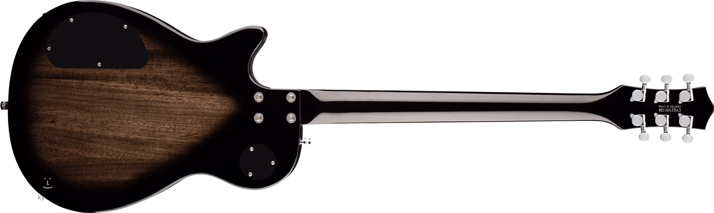 Zwei der hauseigenen Mini-Humbucker verleihen der Gitarre einen definierten, artikulierten Sound auch bei höherer Verzerrung und ausgeprägterer Stimmung, wozu der längere Hals (756 mm) einlädt. Lautstärkepotentiometer, Klangregler und ein dreistufiger Tonabnehmerschalter dienen zur Einstellung des Sounds. Die Saiten werden in den Die-Cast-Mechaniken, dem Adjusto-Matic-Saitenhalter und den Gretsch V Stoptail-Saitenhaltern gehalten. Das stilvolle Design des Instruments wird durch traditionelle Elemente in Form einer hellen Korpusumrandung akzentuiert, die durch schwarze und weiße Linien, verchromte Hardware und ein schwarzes Plexi-Schlagbrett mit einem weißen Gretsch-Logo ergänzt wird.