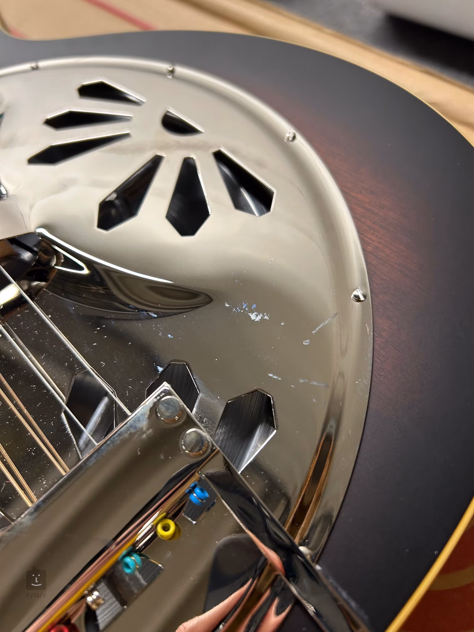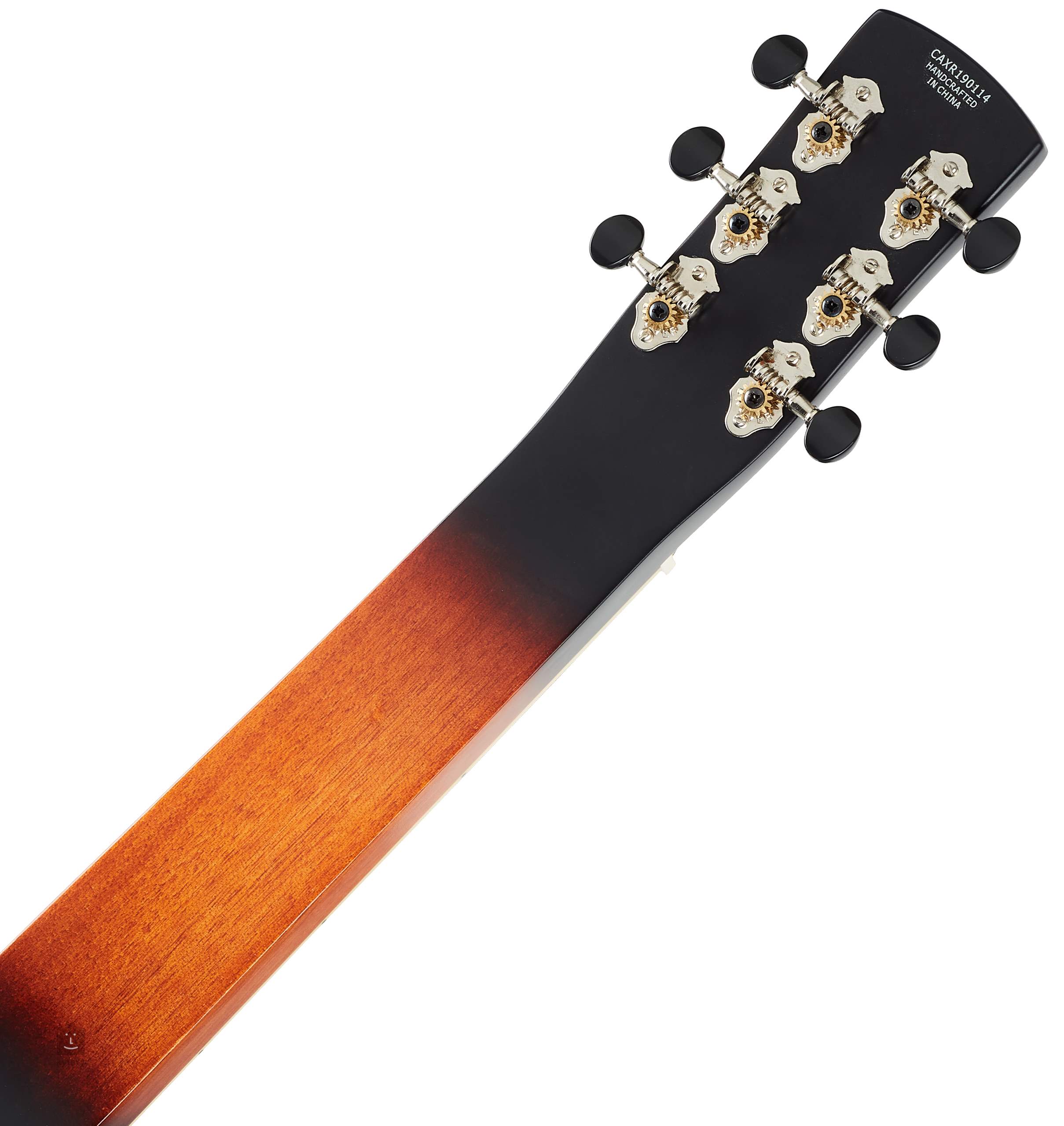 Für die Tonabnahme sorgt das Fishman Nashville Resophonic System, das speziell für diese Art von Instrumenten entwickelt wurde. Die Saiten sind in Grover-Stimmmechaniken, einem Spider-Griffbrett und einem Weathered Trapeze Tailpiece montiert. Der stilvolle Look wird durch das 2-Color-Sunburst-Finish, die seidenmatte Lackierung von Korpus und Hals sowie die verchromte Hardware noch unterstrichen.