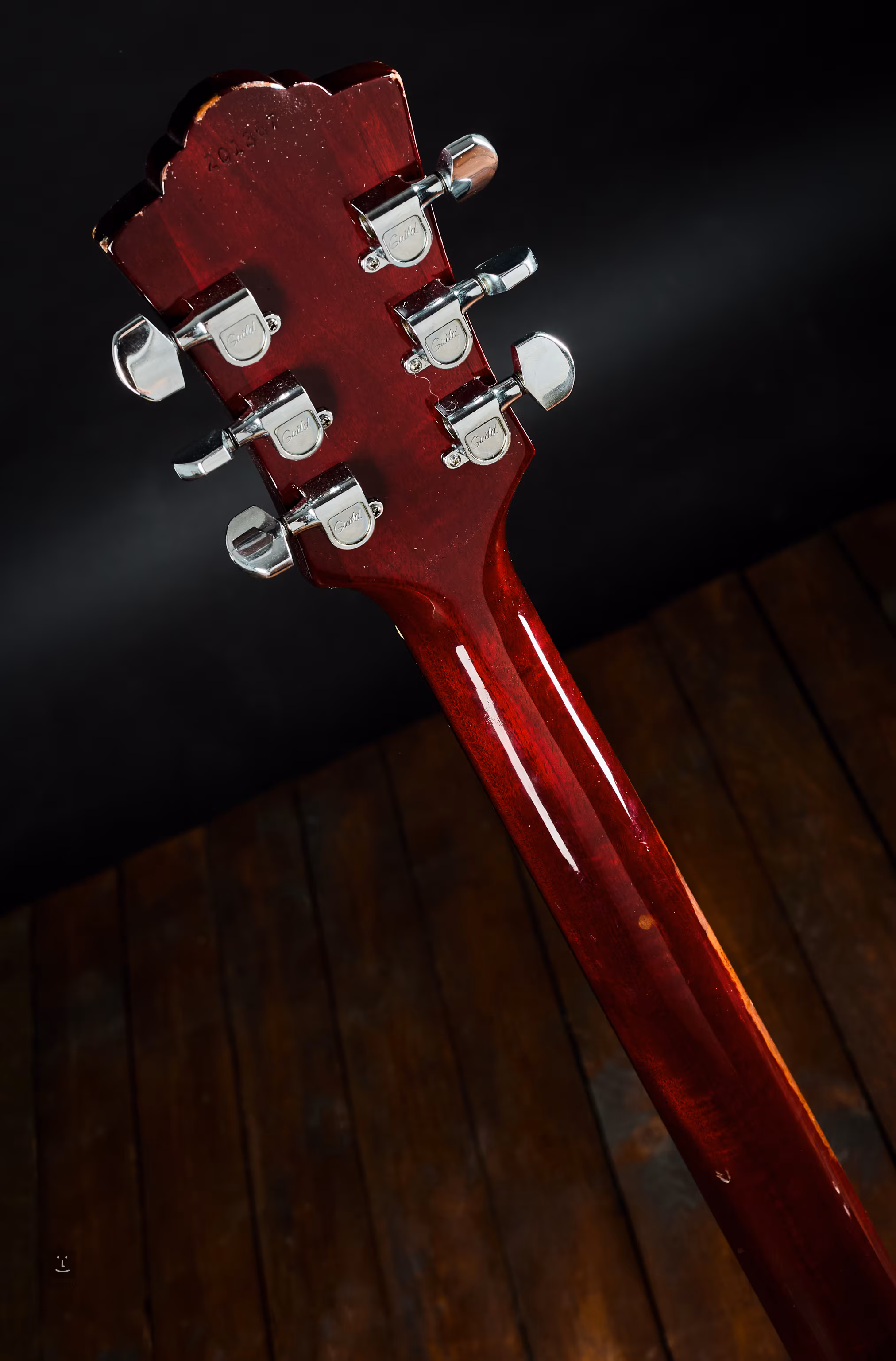 Die Tonabnehmer wurden durch Gibson 490R am Hals und 490T am Steg ersetzt, die Potentiometer sind original Guild (aus dem Jahr 1978). Das 24-Bund-Griffbrett aus Ebenholz ist overmoulded. Die Saiten sind durch einen massiven Messingstringer verankert, der zum langen Sustain des Instruments beiträgt. Der Korpus ist aus Mahagoni, ebenso der Hals.
