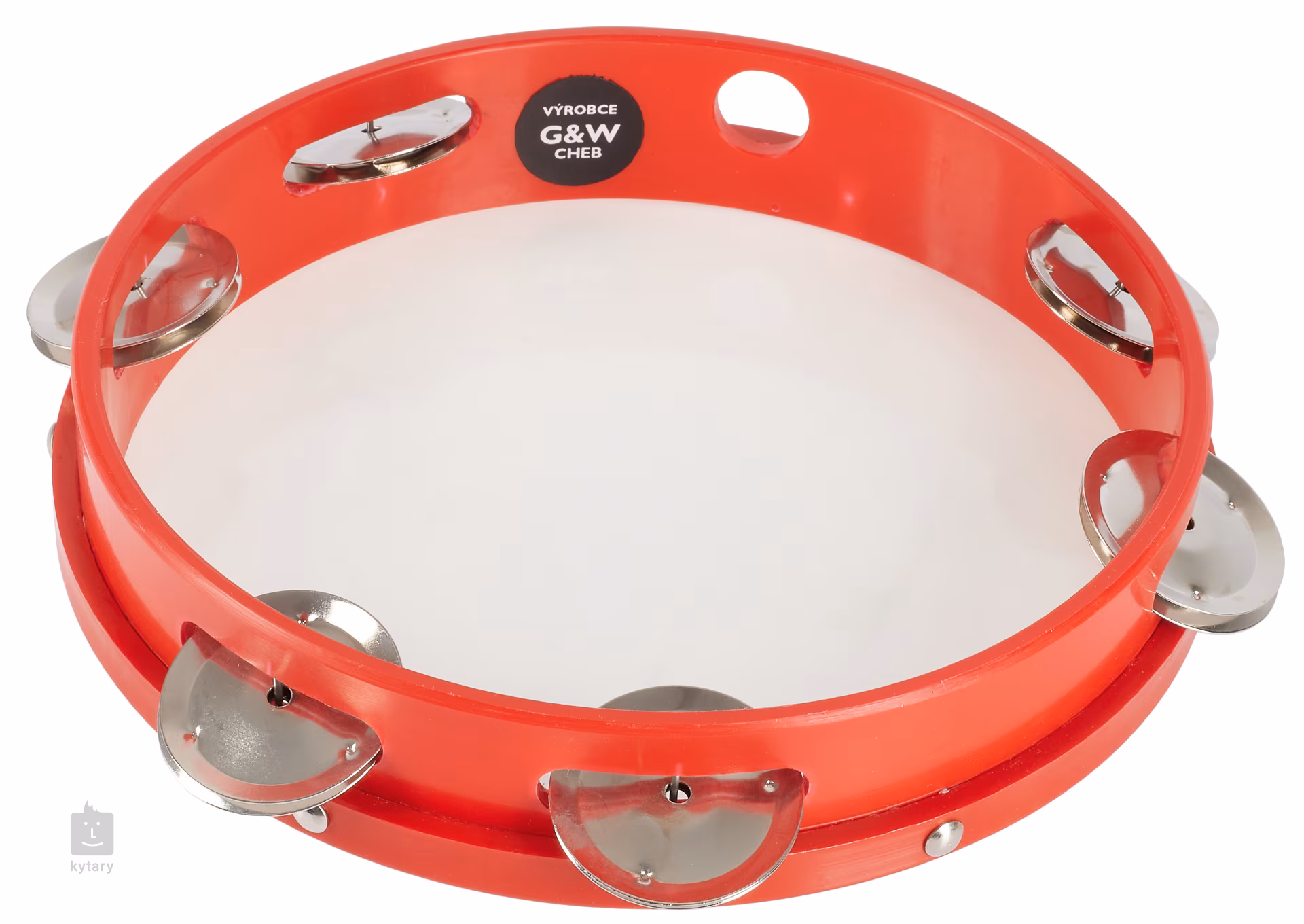 Tamburin des tschechischen Herstellers G+W. Dank des Kunststoffgehäuses mit einem Durchmesser von 20 cm und sechs Stahlplattenpaaren bietet es einen angenehmen und kraftvollen Klang und eine hohe Lebensdauer. Die vorgestimmte Membran erweitert die Klangmöglichkeiten des Instruments erheblich.