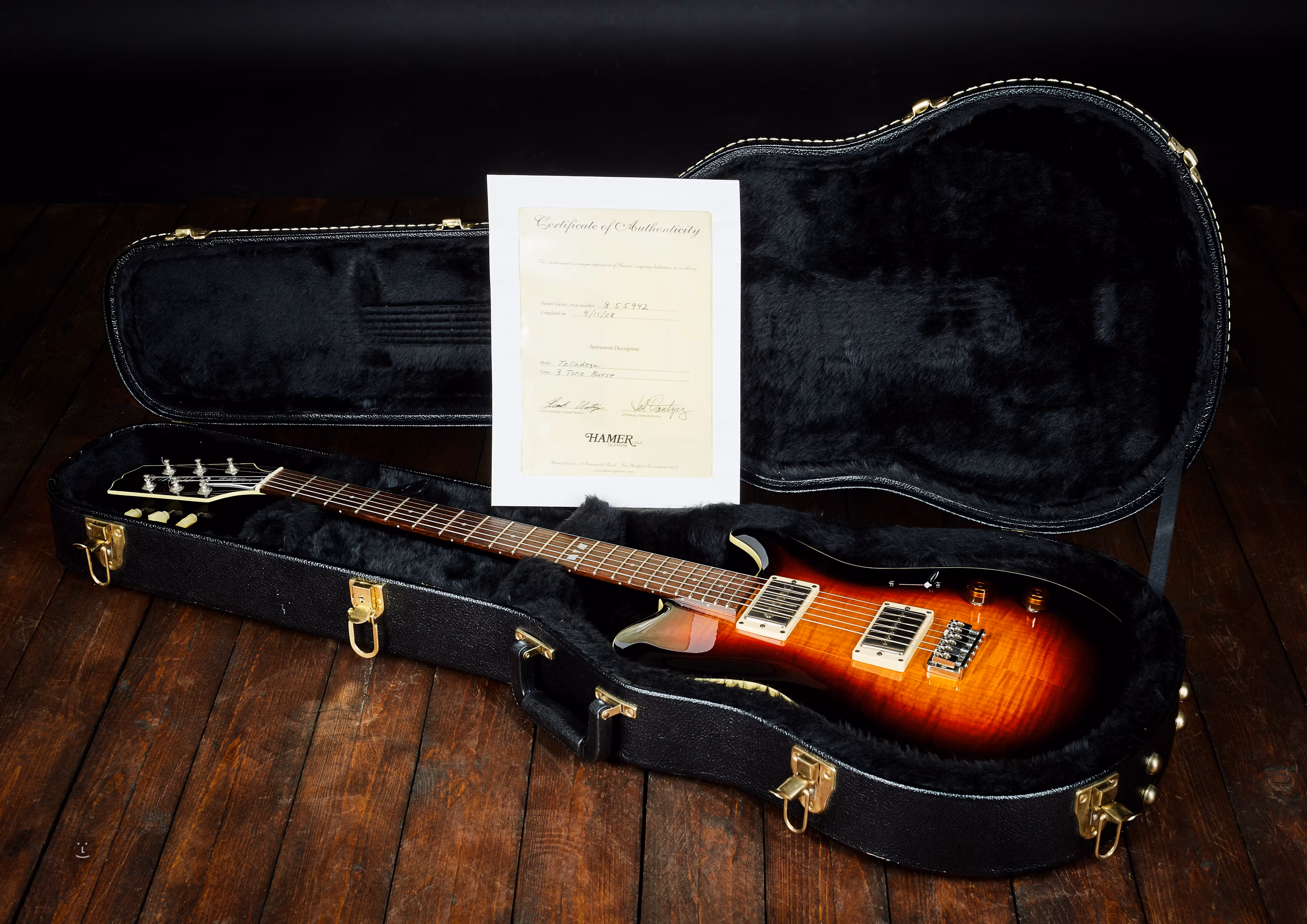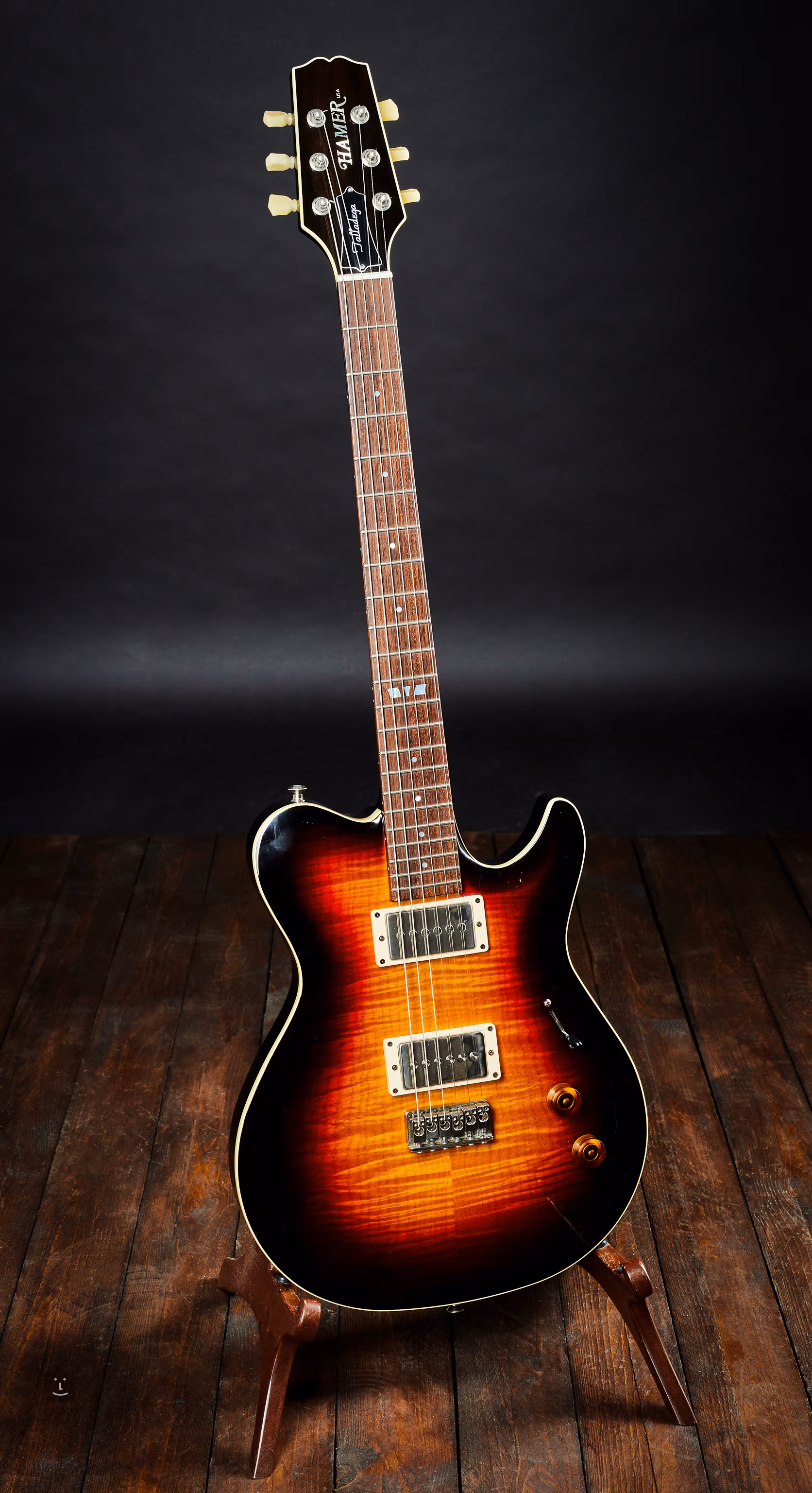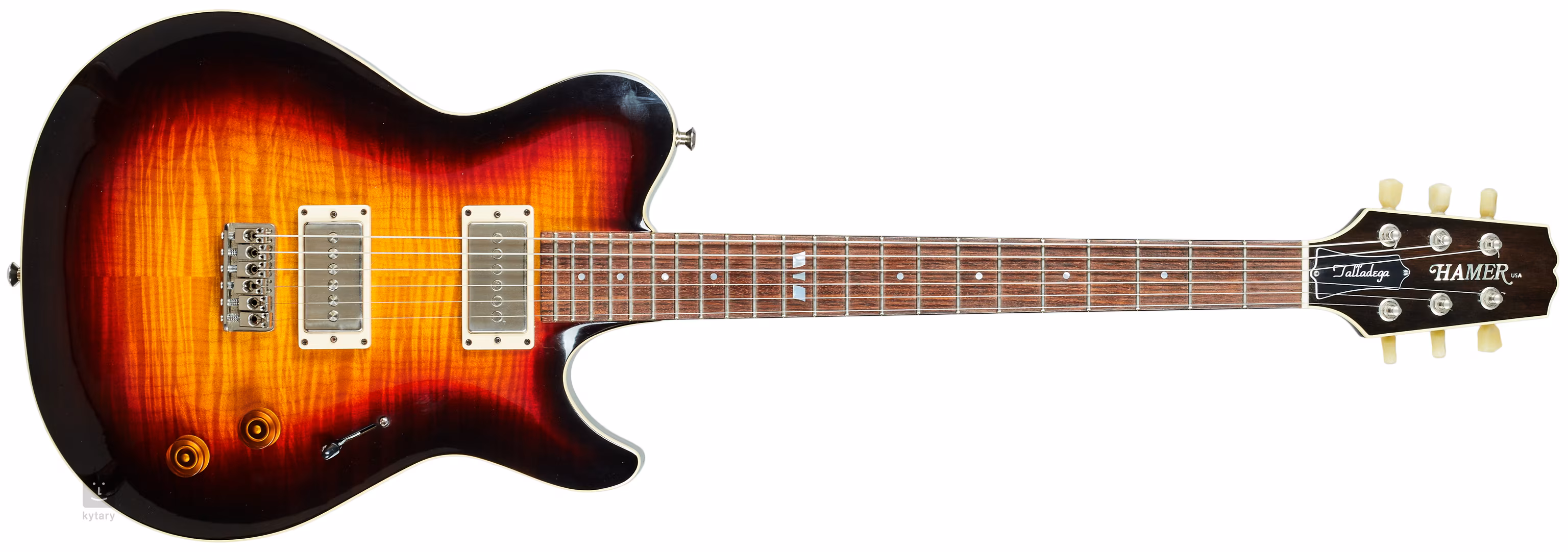 Die Decke aus gemasertem Ahorn ist geprägt (geschnitzt), der Rest des Körpers ist Esche aus einem Stück Holz. Im Inneren des Instruments befindet sich ein Tone-Block, die Flügel sind hohl. Die Seymour Duncan Tonabnehmer wurden speziell für dieses Modell entwickelt. Das Palisandergriffbrett hat einen Radius von 14", die Mensur beträgt 25,5".