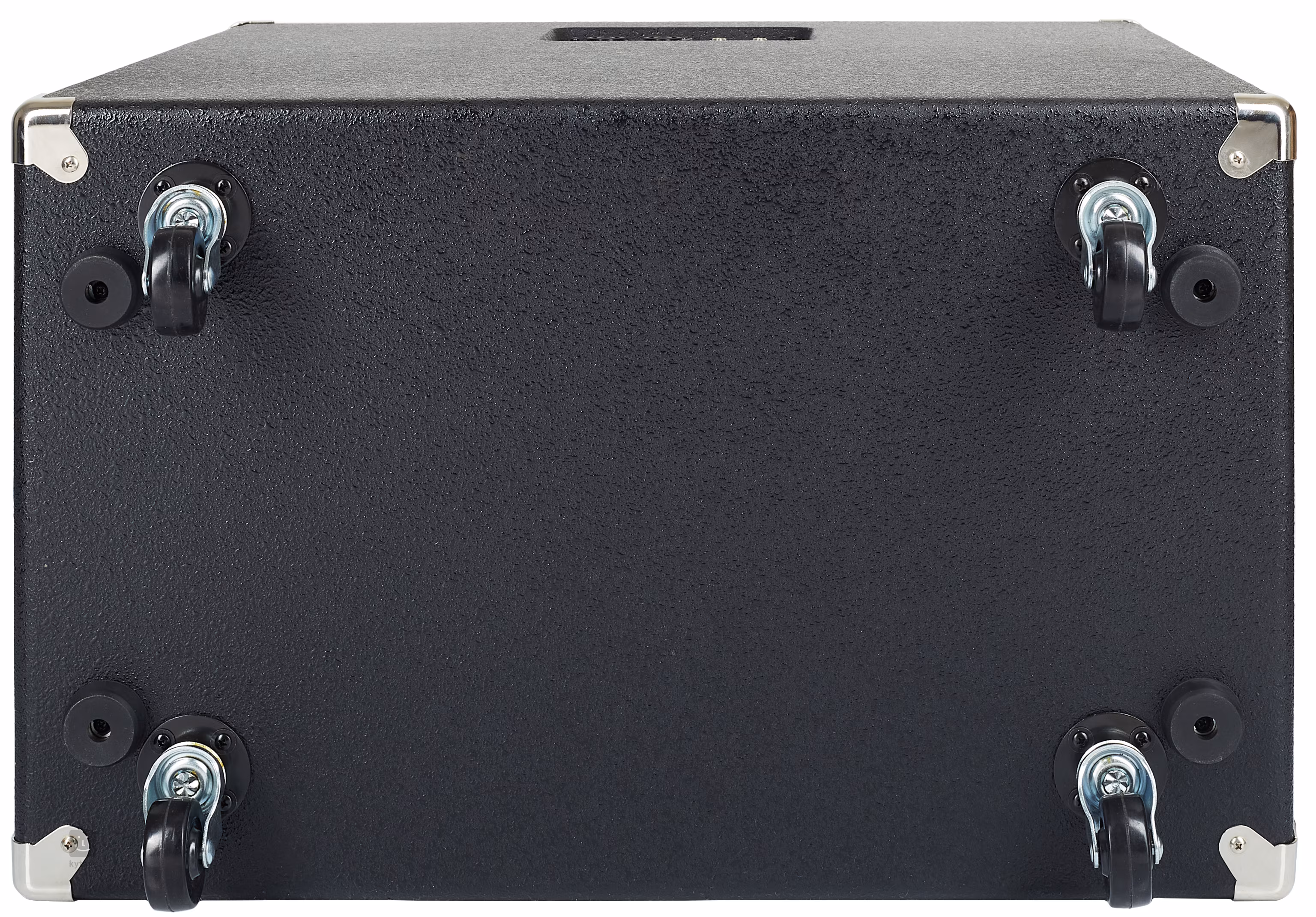 Das Gehäuse des Lautsprechers besteht aus 16 mm dickem, kammergetrocknetem Sperrholz, das das Gewicht des Lautsprechers drastisch reduziert und gleichzeitig seine Robustheit und hervorragenden akustischen Eigenschaften beibehält. Auf der Vorderseite ist die Box mit einer Öffnung für eine noch bessere Klangprojektion ausgestattet. Für maximale Robustheit verfügt das Gehäuse dann über ein Stahlgitter, Stahlecken und eine schwarze Strukturlackierung.