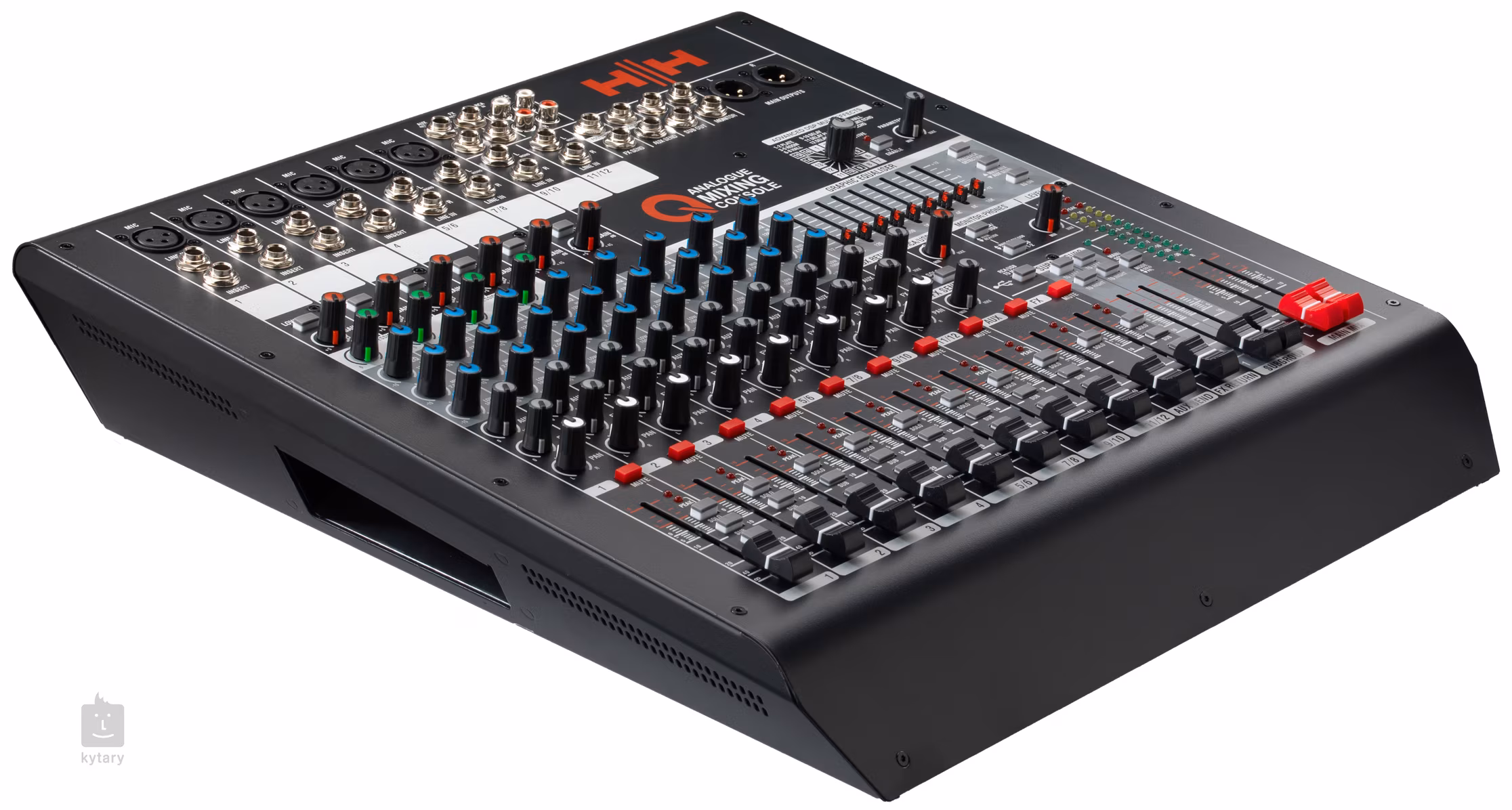 Das analoge Mischpult H&H Q12FX ist ein kompaktes Gerät mit zwölf Kanälen, das sowohl für die Beschallung von Bars, Clubs, kleinen Festivals, Konferenzen oder Vorträgen als auch für die Aufnahme von Musik, Podcasts und Voiceovers eingesetzt werden kann.