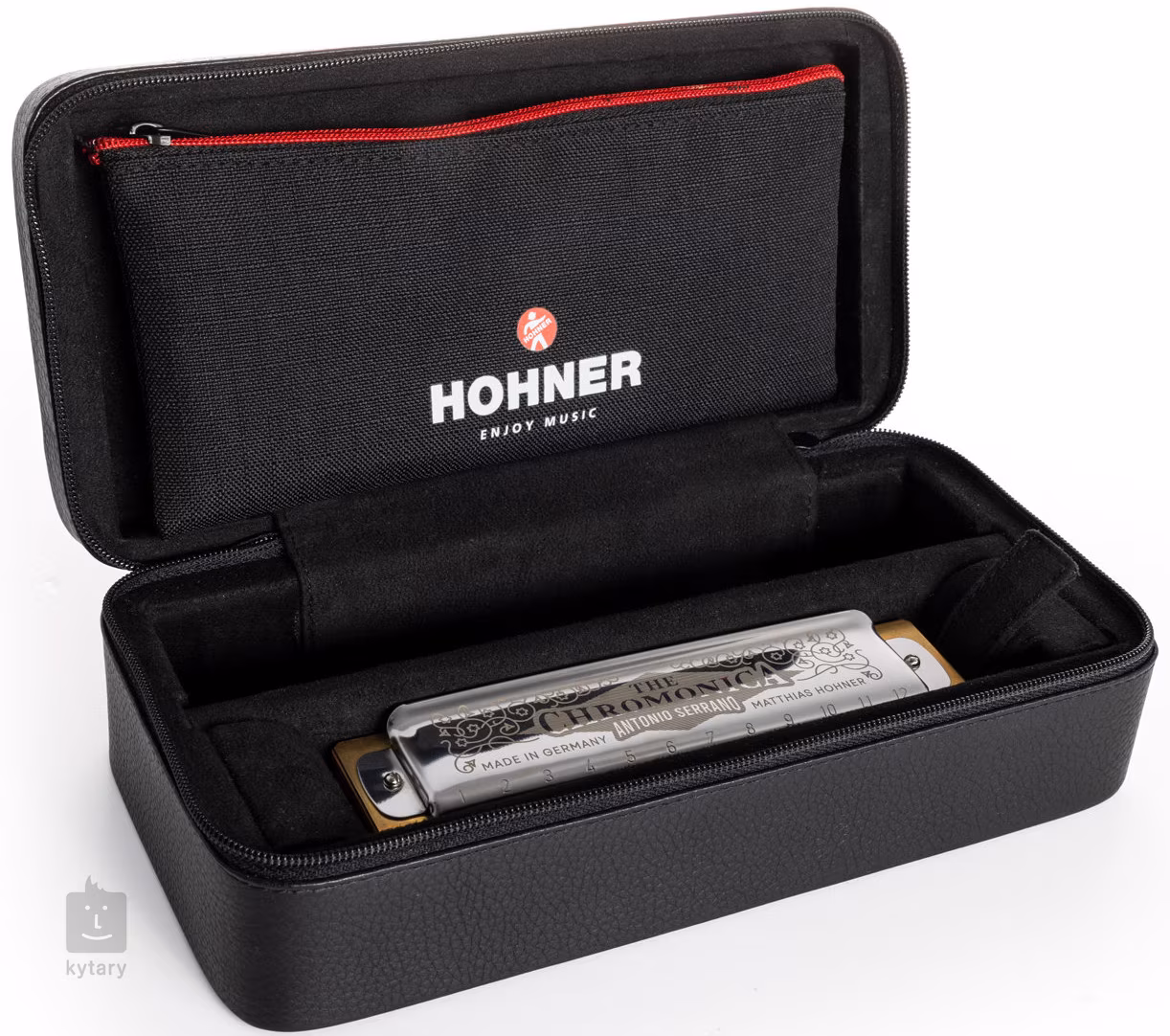 Das deutsche Unternehmen Hohner gehört seit mehr als 160 Jahren zu den bedeutendsten Herstellern von Mundharmonikas weltweit. Das Signature-Modell Antonio Serrano verbindet somit die lange Tradition der Marke mit den Anforderungen eines der renommiertesten zeitgenössischen Chromatik-Harmonikaspieler und ist ein Instrument, das sich sowohl im Studio als auch auf der Konzertbühne bewährt.