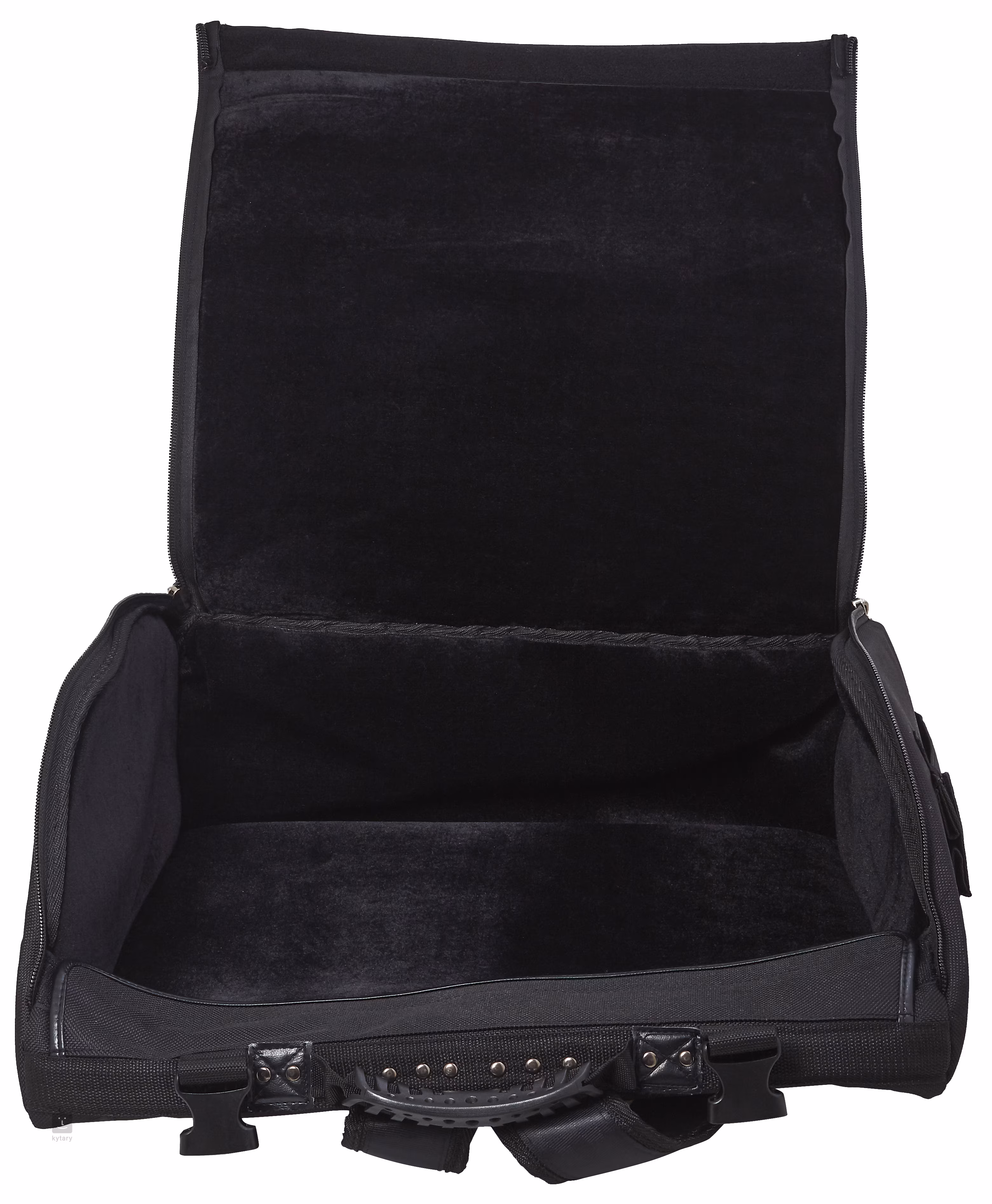 Die Innenhülle dieser Abdeckung besteht aus Cordura, einem strapazierfähigen Gewebe aus strukturierten Polyamidfasern, das sich durch enorme Festigkeit und Widerstandsfähigkeit gegen Abrieb und andere mechanische Beschädigungsrisiken auszeichnet. Der Innenraum ist gepolstert und verstärkt, um das Werkzeug ausreichend vor Beschädigungen zu schützen. Große geräumige Taschen für Zubehör, kleinere für Stifte und eine Halterung für das Notenpult sind bei dieser Tasche selbstverständlich. Verstellbare, gepolsterte Schultergurte sorgen für den nötigen Komfort und die nötige Beweglichkeit.