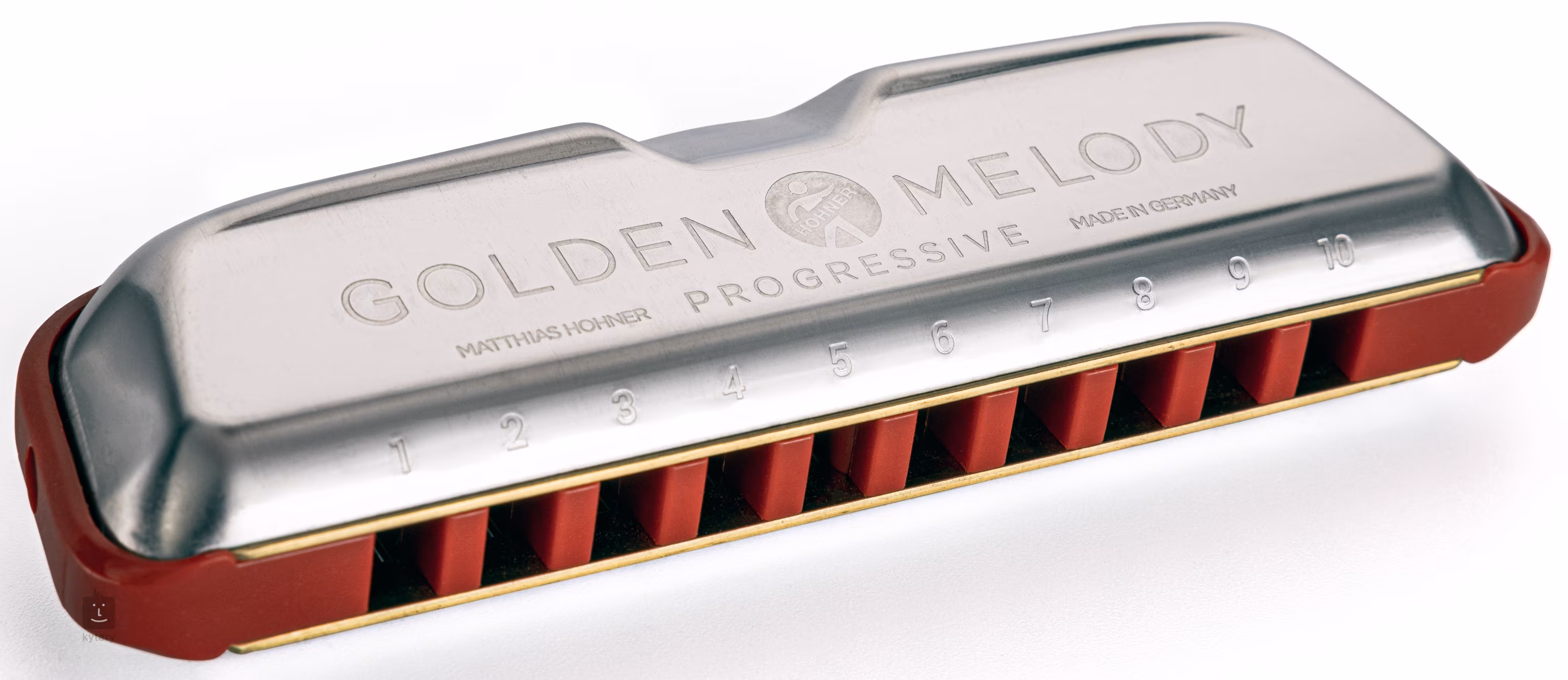Das Modell Golden Melody zeichnet sich insbesondere durch sein Retro-Design aus den 1950er Jahren und seine gleichmäßige Stimmung aus, d. h. es ist in allen Intervallen präzise gestimmt. Es eignet sich daher ideal für das melodische Spiel einzelner Noten und ist bei Jazzmusikern beliebt (Howard Levy, Carlos Del Junco). Darüber hinaus beherrscht es Akkordbegleitungen und Bending- oder Overblow-Techniken gleichermaßen gut, so dass Boogie, Blues, Rock oder andere Musikstile kein Problem darstellen. Sie hat einen roten Korpus aus strapazierfähigem ABS-Verbundmaterial, Abdeckungen aus rostfreiem Stahl, zwanzig Tonabnehmer aus Messing, 0,9 mm dicke Messingscheiben und einen Tonumfang von drei Oktaven.
