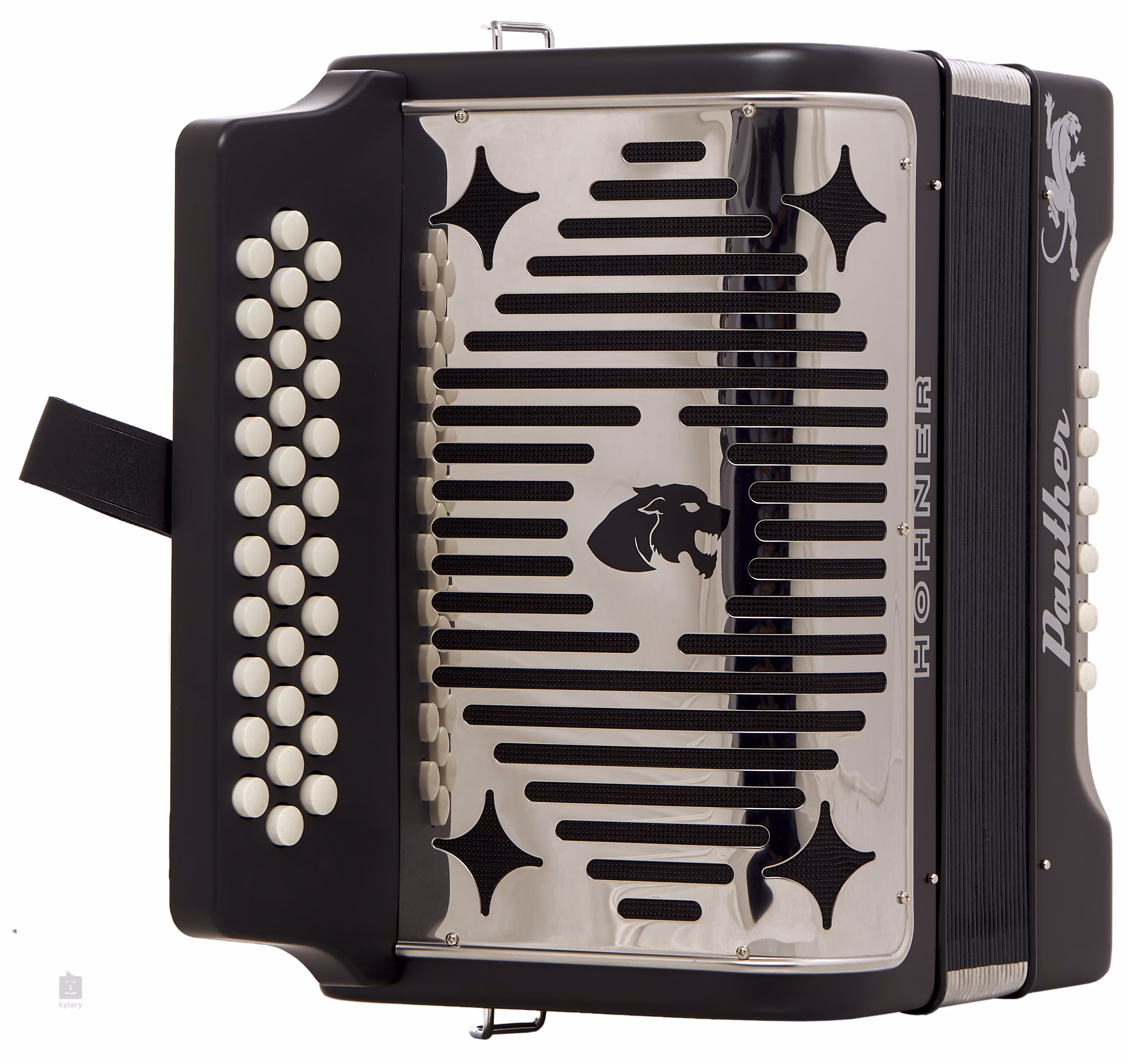 Das diatonische Panther-Akkordeon ist das günstigste Modell des diatonischen Hohner-Akkordeons, das für die lateinamerikanischen Stilrichtungen Vallenato, Tex-Mex, Norte?o oder Merengue entwickelt wurde. Die ideale Wahl für absolute Anfänger, die in die lateinamerikanische Volksmusik eintauchen wollen.