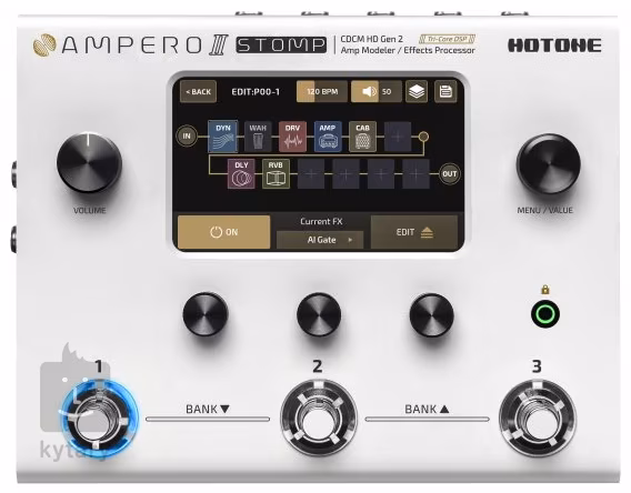 Eine einfache Benutzeroberfläche mit drei Fußschaltern, fünf Drehreglern und einem 4-Zoll-Touchscreen-Display mit einer Auflösung von 800 x 480 Pixeln ermöglicht ein schnelles und einfaches Editieren und Organisieren einzelner Patches - kein Herumschleppen auf sperrigen Pedalboards mehr. Die Klangqualität wird durch den Tri-Core-Digitalprozessor des ESS Sabre, 24-Bit-A/D/A-Wandler, einen Dynamikbereich von bis zu 127 dB und die Modellierungstechnologien CDCM (Comprehensive Dynamic Circuit Modeling) und F.I.R.E. (Field Impulse Response Enhancement) gewährleistet, die im Gegensatz zu festen Modellierungsalgorithmen auf jede Veränderung im Schaltkreis reagieren.