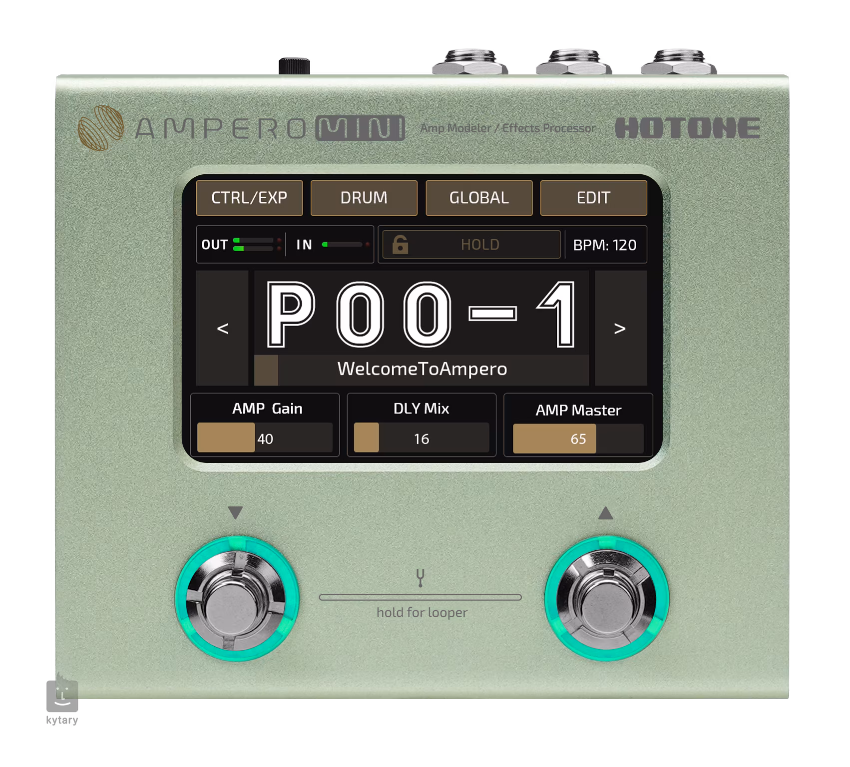 Der Ampero Mini ist das kleinste Gerät der Hotone Ampero Familie von Gitarren-Multieffekten/Verstärkermodellern, aber das schränkt ihn nicht ein oder disqualifiziert ihn im Vergleich zu den anderen Produkten der Reihe. Er bietet insgesamt 199 Gitarreneffekte, darunter mehr als 100 Modeling-Gitarren, Lautsprecher- und Pedaleffekte bekannter Marken, Mikrofonsimulationen, Original-Hotone-Effekte, werkseitige und benutzerdefinierte IR-Aufnahmeoptionen, fortschrittliche Algorithmen zur Simulation akustischer Gitarren und eigene Presets für akustische Instrumente, 198 Presets (99 Werks- und 99 User-Presets), integrierte Drum-Machine mit 100 Rhythmus-Patterns, Looper mit 100 Sekunden Aufnahmezeit und USB-Anschluss zur Verwendung als USB-Audio-Interface oder für Firmware-Updates oder Aufnahme/Bearbeitung von Effekten in kostenloser Mac/PC-Software