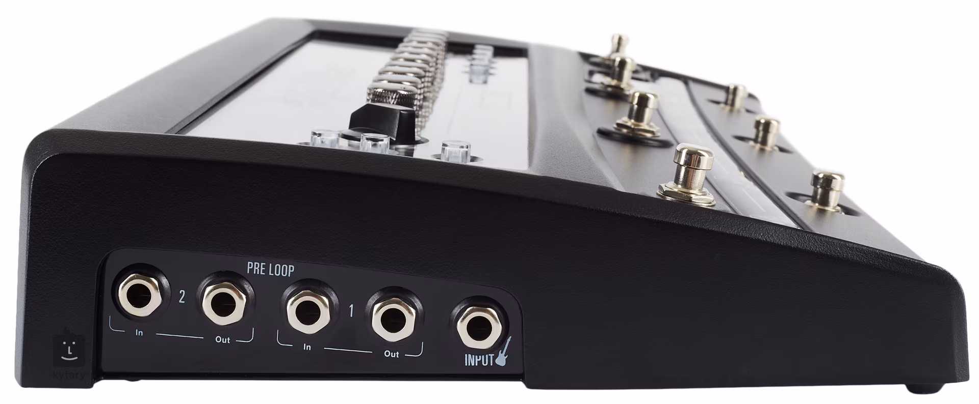 • Regler 7x FS, Master, Presence, Resonance, Cab Type/Sagging, Reverb/Noise gate, Dly Level/Treble, Feedback/Mid, Dly Time/Bass, Mod Type/Volume, Intensity/Gain, Pre Loop 1/2, FX Access, Boost, FX Loop, Store, Monitor In
