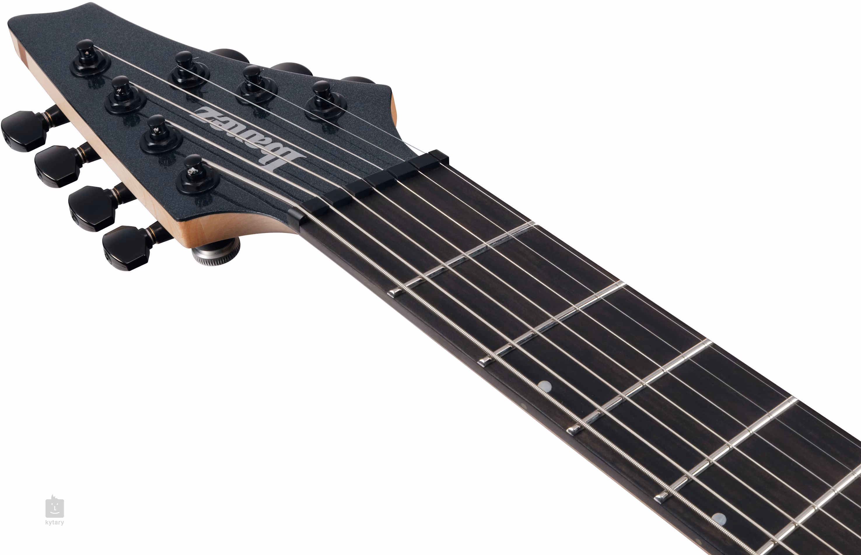 An den verschraubten Hals aus fünf Stücken Ahorn und Walnuss ist ein Ebenholzgriffbrett mit vierundzwanzig Jumbo-Bünden aus Edelstahl geklebt. Das asymmetrische Profil Parallel Wizard AS-7 des Halses auf der Seite der dicken Saiten garantiert ein möglichst natürliches Spielgefühl. Zu modernen mehrsaitigen Gitarren gehört auch eine variable Multi-Scale-Mensur (hier konkret 648–691 mm). Die Orientierung auf dem Griffbrett erleichtern Perlmutt-Positionsmarkierungen (Mother-of-Pearl) und lumineszierende Markierungen an der Seite.