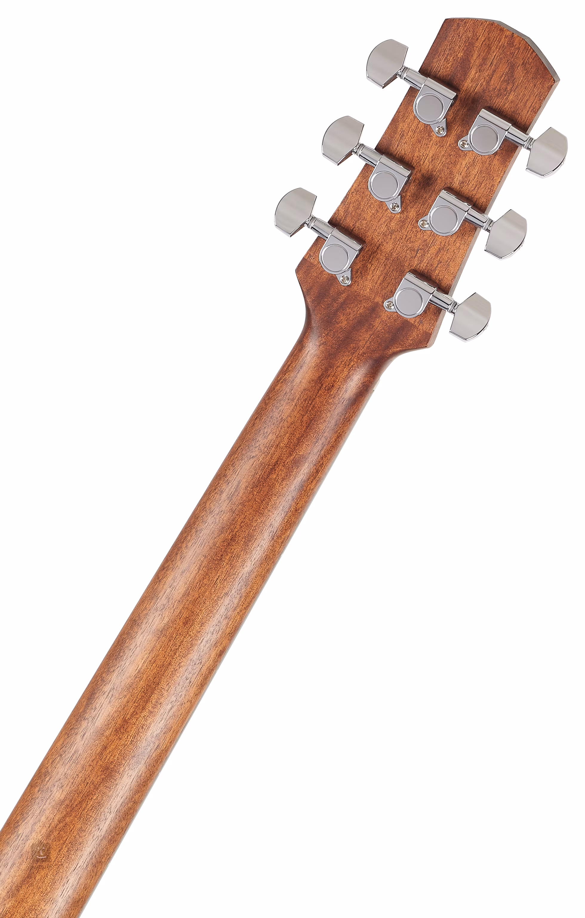 Die Vorderseite der AAD140-OPN Akustikgitarre besteht aus massivem Okoumé, während Boden und Zargen aus umspritztem Okoumé gefertigt sind. Auf den exotischen Nyatoh-Hals ist ein Ovangkol-Griffbrett mit 20 Bünden geklebt. Die Wärmebehandlung des Halses (Thermo Aged) verleiht dem Holz mehr Stabilität und eine bessere Resonanz, was auch durch die modifizierte X-M Verrippung (optimale Übertragung der Saitenschwingungen auf den gesamten Korpus) unterstützt wird. Das Low Oval Grip-Halsprofil und die abgerundeten Griffbrettkanten sorgen für eine geschmeidige Bewegung der Hand auf dem Griffbrett und einen guten Durchgriff.