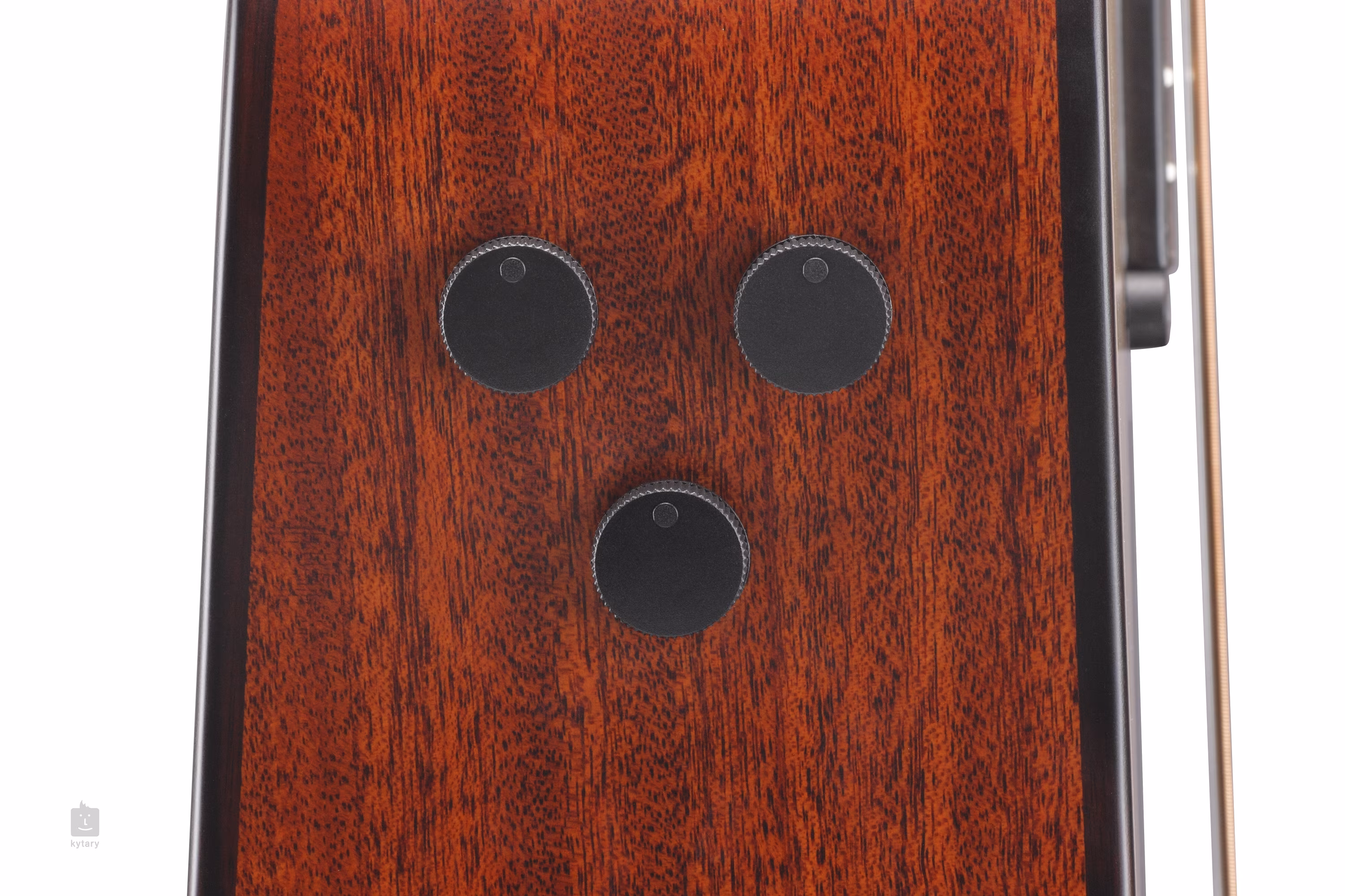 Die Saiten sind über den Nullbund und den kompensierten Knochensattel in verchromten Die-Cast-Getrieben mit 18:1-Übersetzung und Ebenholzgriffbrett verankert. Ibanez Advantage-Wirbel bieten gegenüber den Standardmodellen Vorteile in Bezug auf die einfache Handhabung und die feste Saitenbefestigung. Das stilvolle Aussehen des Instruments wird durch traditionelle Elemente in Form einer hölzernen Korpusverstrebung, einer hölzernen Rosette, eines Schlagbretts aus Schildpattimitat und einer originellen, konisch zulaufenden Kopfplatte unterstrichen.