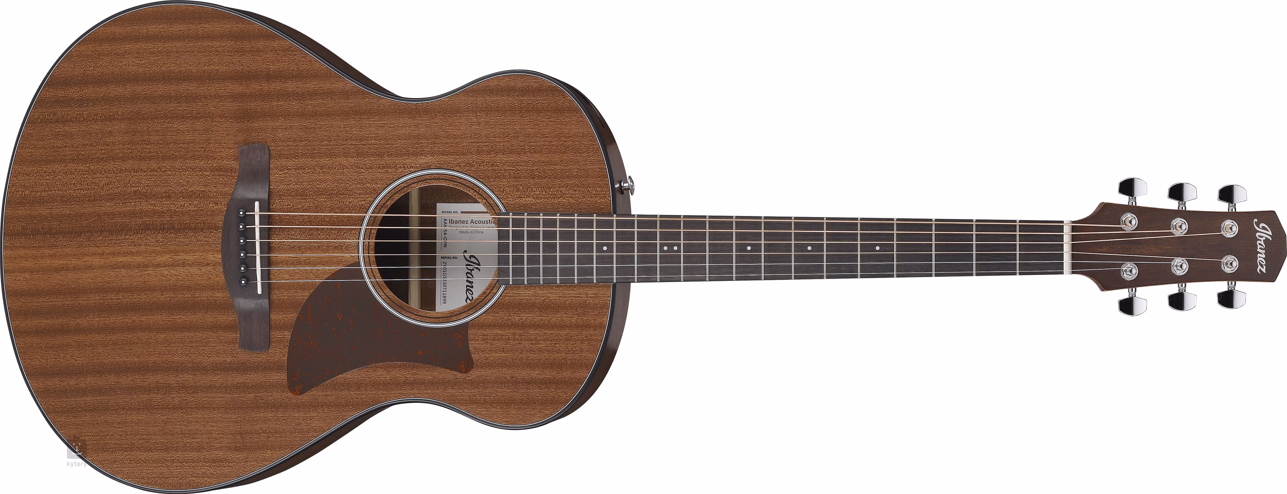 Der Korpus der AAM54-OPN-Akustikgitarre besteht aus Sapele - die Frontplatte ist aus massivem Sapele, die Bodenplatte und die Zargen sind aus Sperrholz. Auf den Okoumé-Hals ist ein Griffbrett aus Purpleheart-Holz mit 20 Bünden geleimt. Eine reduzierte X-M Verrippung überträgt die Saitenschwingungen optimal auf den Korpus. Ein interessantes Merkmal ist das speziell entwickelte Loch auf der Rückseite des Instruments (A.I.R.port), durch das man besser hören und fühlen kann, was man spielt.