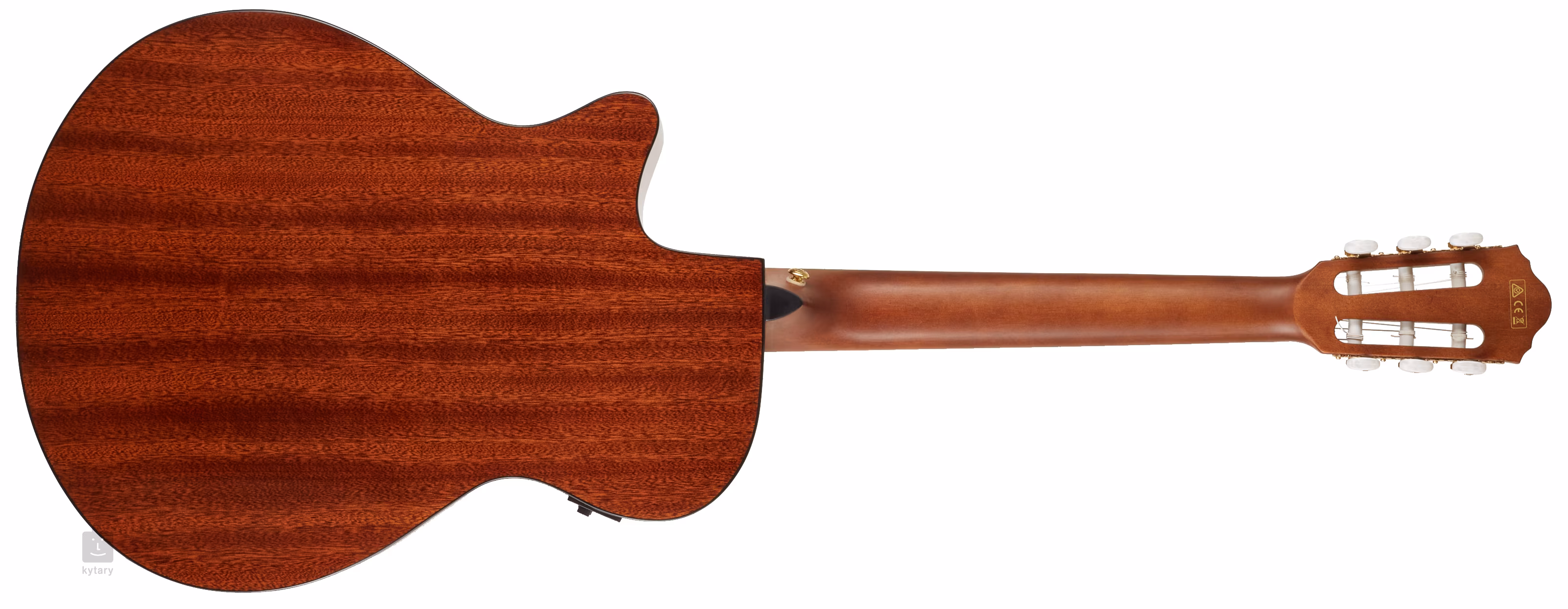 Die AEG50N-NT ist eine klassische elektroakustische Gitarre, die die moderne Korpuskonstruktion der AEG elektroakustischen Gitarren mit dem Klang von Nylonsaiten kombiniert. Der geschichtete Korpus der Gitarre besteht aus einem Fichtenvorderbrett und einem Boden und Zargen aus afrikanischem Sapele, das in Optik und Eigenschaften echtem Mahagoni ähnelt. Ein Nussbaum-Griffbrett mit zwanzig Bünden ist auf den Nyatoh-Hals geklebt. Die untere Aussparung des Korpus bietet auch in den höchsten Lagen des Griffbretts einen guten Halt, die Orientierung auf der Oberfläche wird durch weiße Positionspunkte erleichtert.