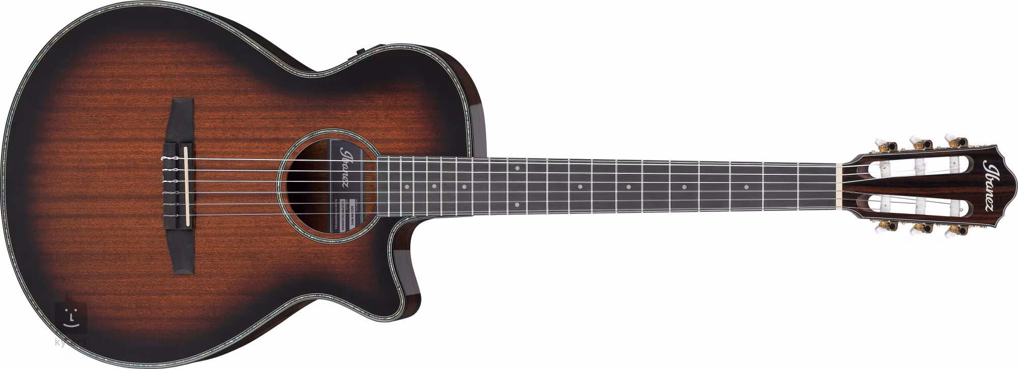 Die AEG74N-MHS ist eine klassische elektroakustische Gitarre, die die moderne Korpuskonstruktion der AEG-Elektroakustikgitarren mit dem Klang von Nylonsaiten kombiniert. Die Vorderseite der Gitarre besteht aus laminiertem Sapele, während der Boden und die Zargen aus laminiertem exotischem Bocote mit einem markanten Muster gefertigt sind. Der Hals aus Nyatoh-Holz ist auf ein Makassar-Griffbrett aus Ebenholz geleimt, das mit zwanzig Bünden versehen ist. Eine gute Anpassung an die höchsten Lagen des Griffbretts wird durch den unteren Korpusausschnitt erleichtert.
