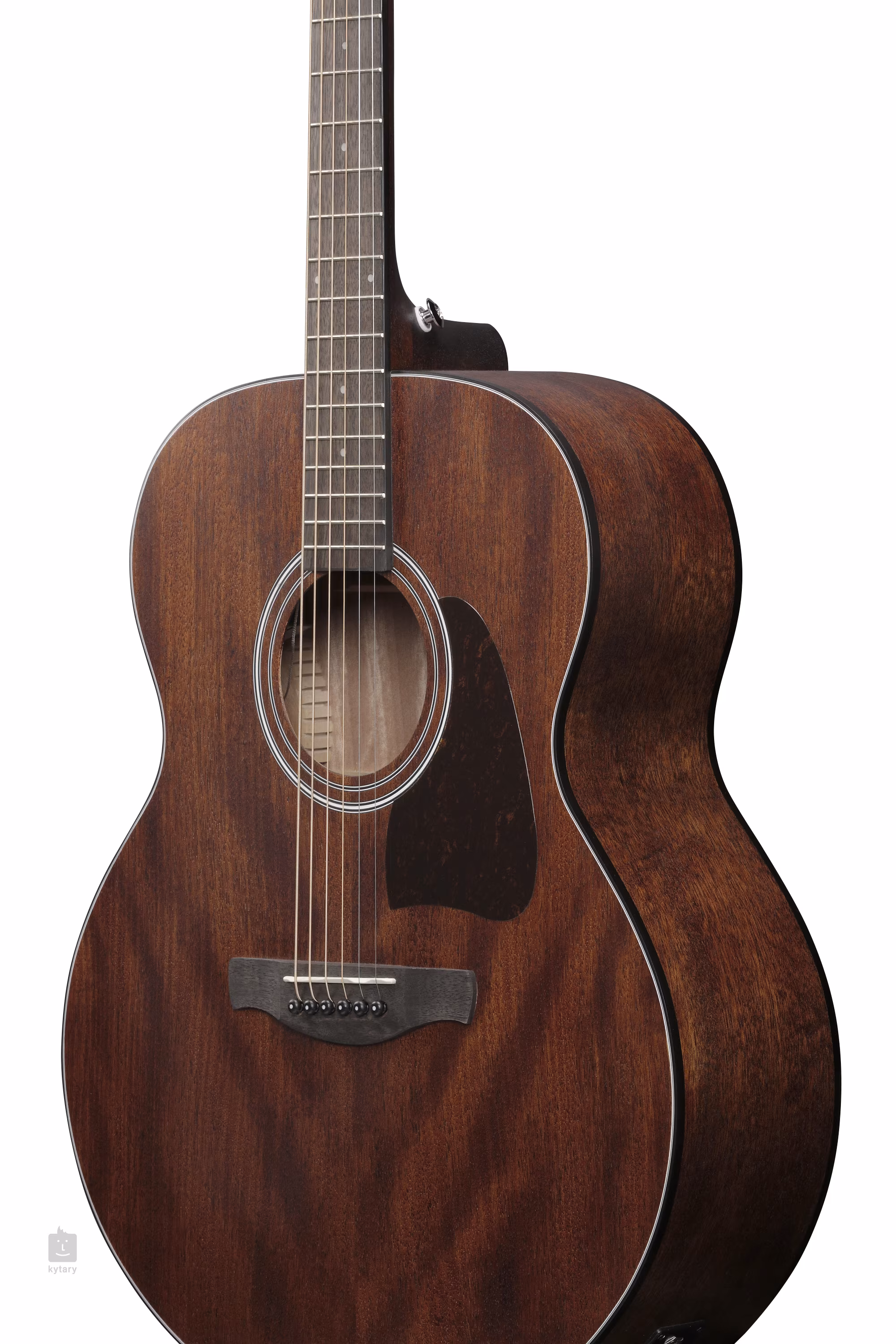 Die Ibanez AJ54E-OPN elektroakustische Gitarre hat einen massiven Jumbo-Korpus. Der Korpus des Instruments selbst ist aus Okoumé gefertigt - Massivholz vorne, laminierter Okoumé-Boden und -Zargen. Die offenporige Lackierung unterstreicht den natürlichen Look der Gitarre. Der exotische Nyatoh-Hals ist auf ein 20-Bund-Feigengriffbrett geleimt. Weiße Positionspunkte auf dem Griffbrett machen die Orientierung leicht.