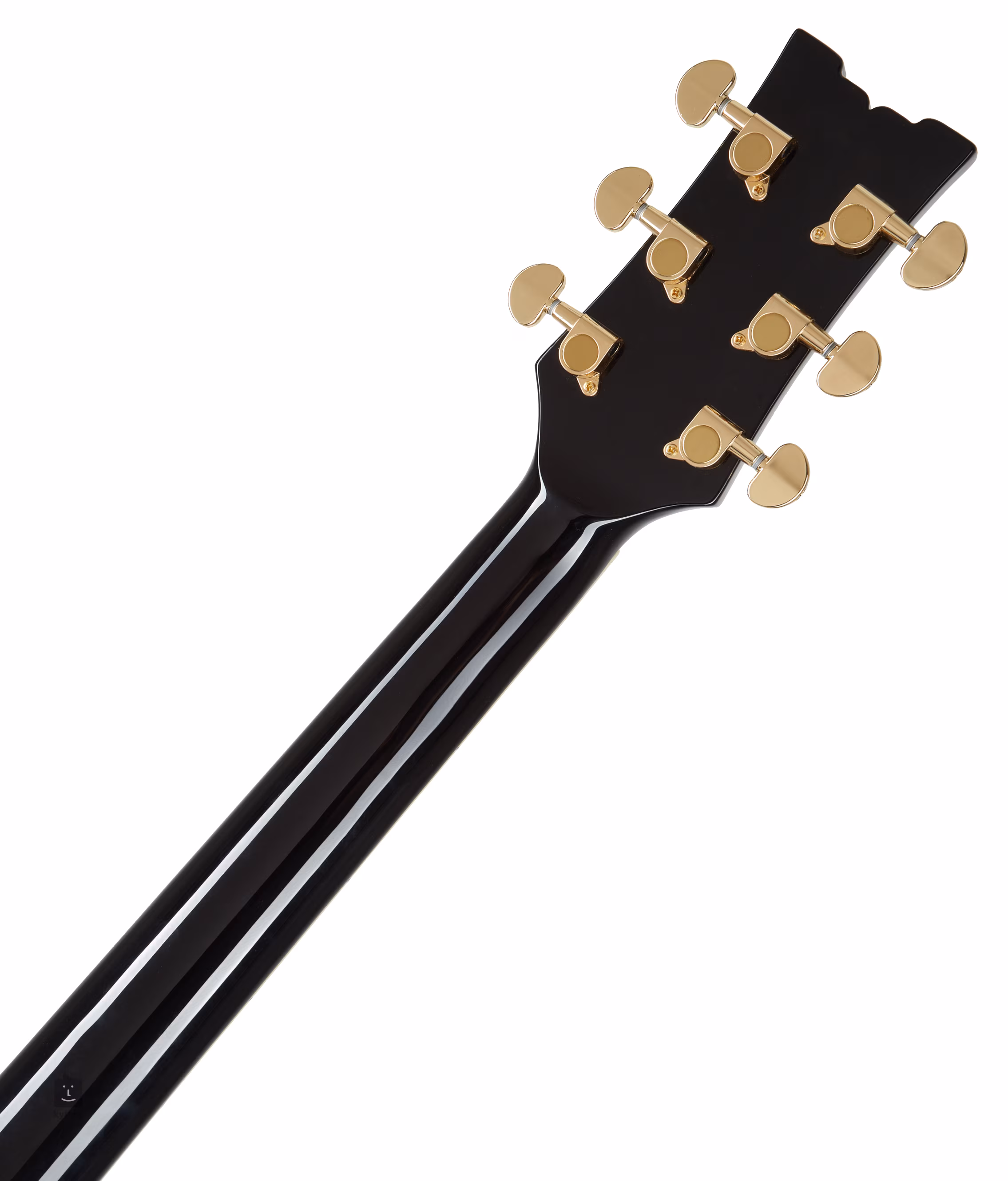 Die AM-Modelle unterscheiden sich von den Standard-Hollowbody-Gitarren durch einen kompakteren Korpus, der für Spieler geeignet ist, die an schmalere, kompaktere Korpusse von E-Gitarren gewöhnt sind. Der Korpus der AMH90-BK ist aus Lindenholz gefertigt. Der Hals aus drei Stücken exotischem Nyatoh- und Ahornholz ist mit einem Griffbrett aus Makassar-Ebenholz mit 22 Medium-Bünden versehen. Die Orientierung auf seiner Oberfläche erleichtern Perlmutt-Positionsmarkierungen (Abalone).