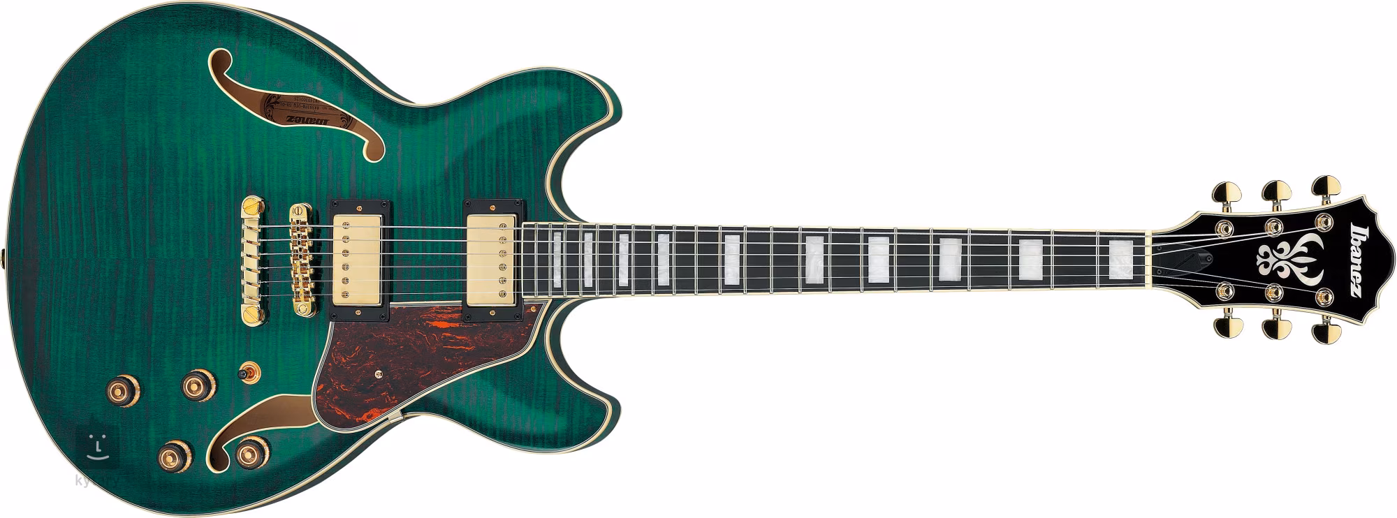 Der Korpus der AS93FM-TMG ist aus laminiertem Ahorn gefertigt. Eine glänzende Lackierung und eine transparente moosgrüne Beize bringen das gemaserte Ahornholz zur Geltung. Auf den dreiteiligen Hals aus Ahorn und exotischem Nyatoh-Holz ist ein Griffbrett aus Makassar-Ebenholz geleimt, das mit zweiundzwanzig mittelgroßen Bünden bestückt ist. Die Orientierung auf dem Griffbrett wird durch Positionsblöcke aus Perlmuttimitation erleichtert.