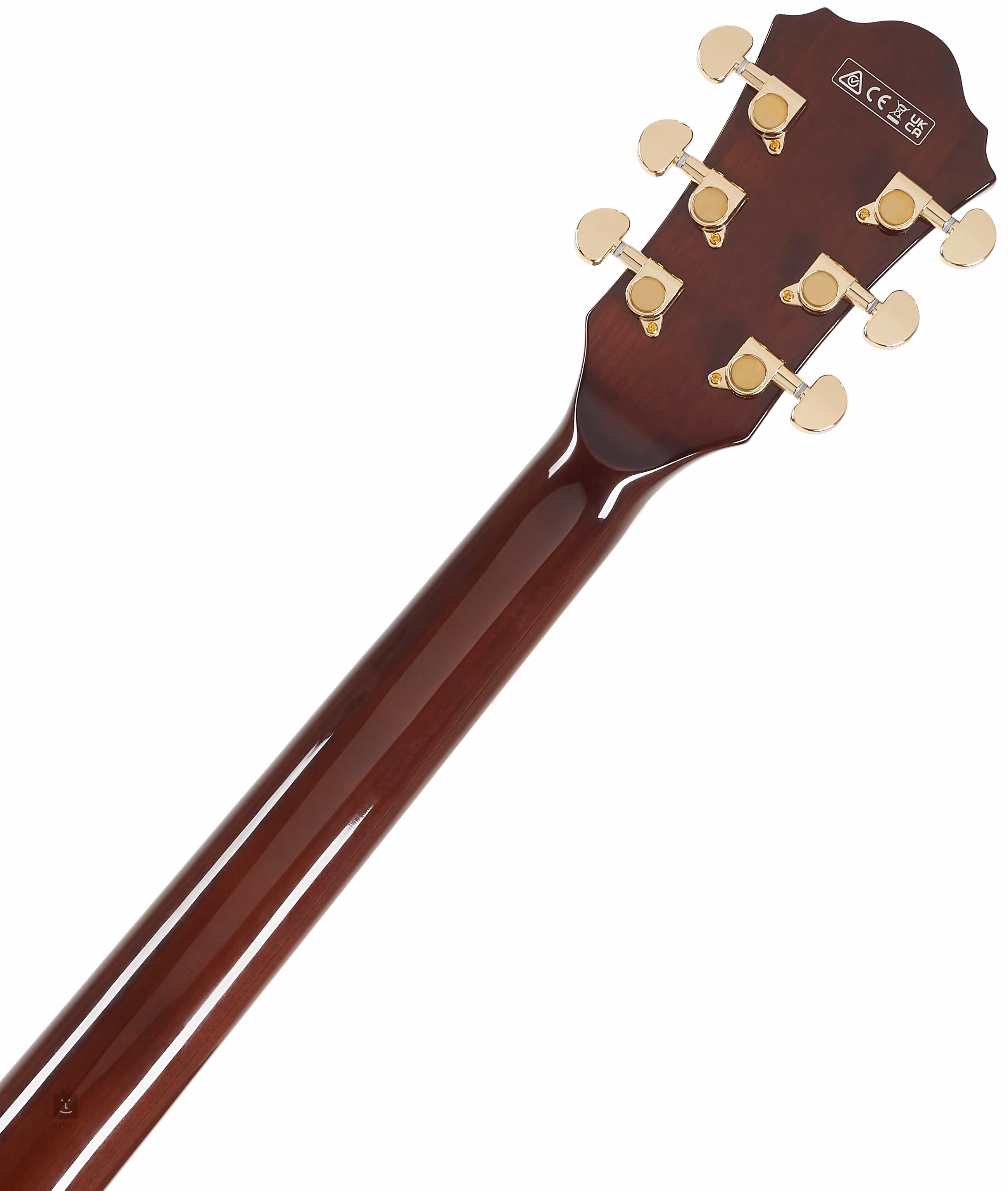 Der Korpus der Gitarre ist aus exotischem Zebrano-Holz mit einer wunderschönen Maserung. Auf den Hals, der aus drei Stücken Nyatoh- und Ahornholz besteht, ist ein Ebenholzgriffbrett mit zweiundzwanzig mittelgroßen Bünden und Positionsblöcken aus Perlmuttimitat geklebt. Stimmstabilität und gutes Sustain werden durch die feste Kopfplatte des Gibraltar Performer und den Quik Change III Saitenwechsler gewährleistet, der, wie der Name schon sagt, einen schnellen und einfachen Saitenwechsel ermöglicht. Das stilvolle Design wird durch helle Zierleisten, goldene Hardware, ein praktisches Schlagbrett aus Schildpatt-Imitat, Sure Grip III-Potentiometer und ein Logo auf der Kopfplatte unterstrichen.