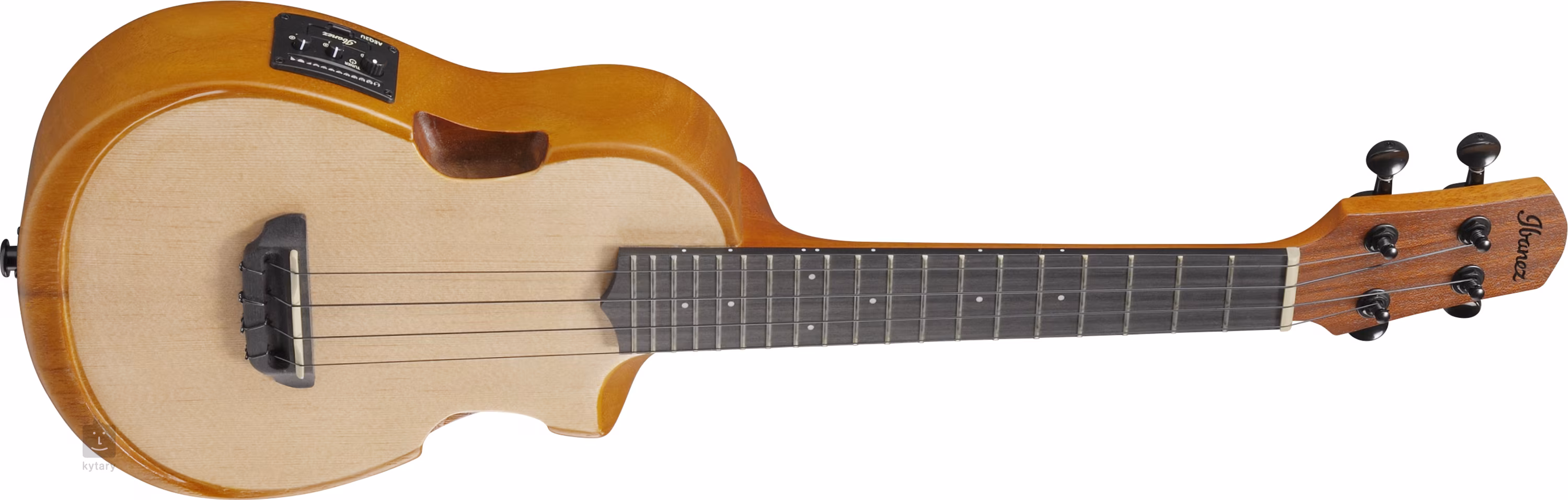 Die elektroakustische Ukulele Ibanez AUC10E-OPN aus der AU-Serie zeichnet sich durch eine interessante Konstruktion aus, bei der Boden und Zargen aus einem massiven Pavlovnia-Holzblock gefertigt und mit einer laminierten Fichtendecke versehen sind. Diese Bauweise und besondere Merkmale in Form von zwei Schalllöchern an den Seiten (Stereo Sound Port System), einer erhöhten Armlehne und einem abgeschrägten unteren Korpusausschnitt verleihen dem Instrument einen unverwechselbaren Klang und eine hervorragende Spielbarkeit.