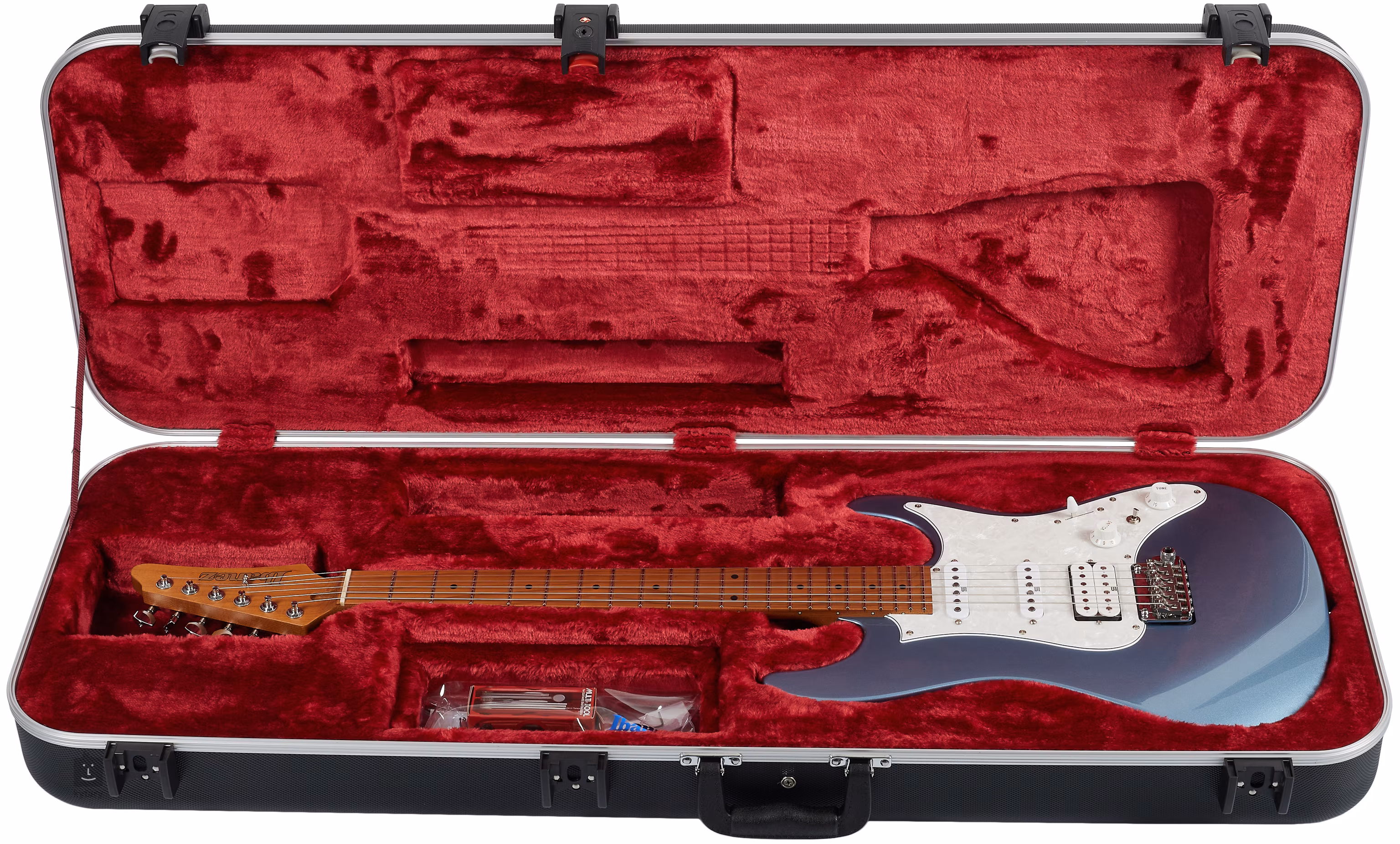Der Korpus der Gitarre ist aus Erle gefertigt. Dank der ergonomischen Form der Korpusrückseite liegt die Gitarre natürlich in der Hand. Das Griffbrett ist mit Jumbo-Bünden aus rostfreiem Stahl ausgestattet. Die abgerundeten Kanten ermöglichen dem Spieler einen bequemen Griff am Hals. Die Orientierung wird durch schwarze Positionspunkte und Leuchtmarkierungen an der Seite des Griffbretts erleichtert.
