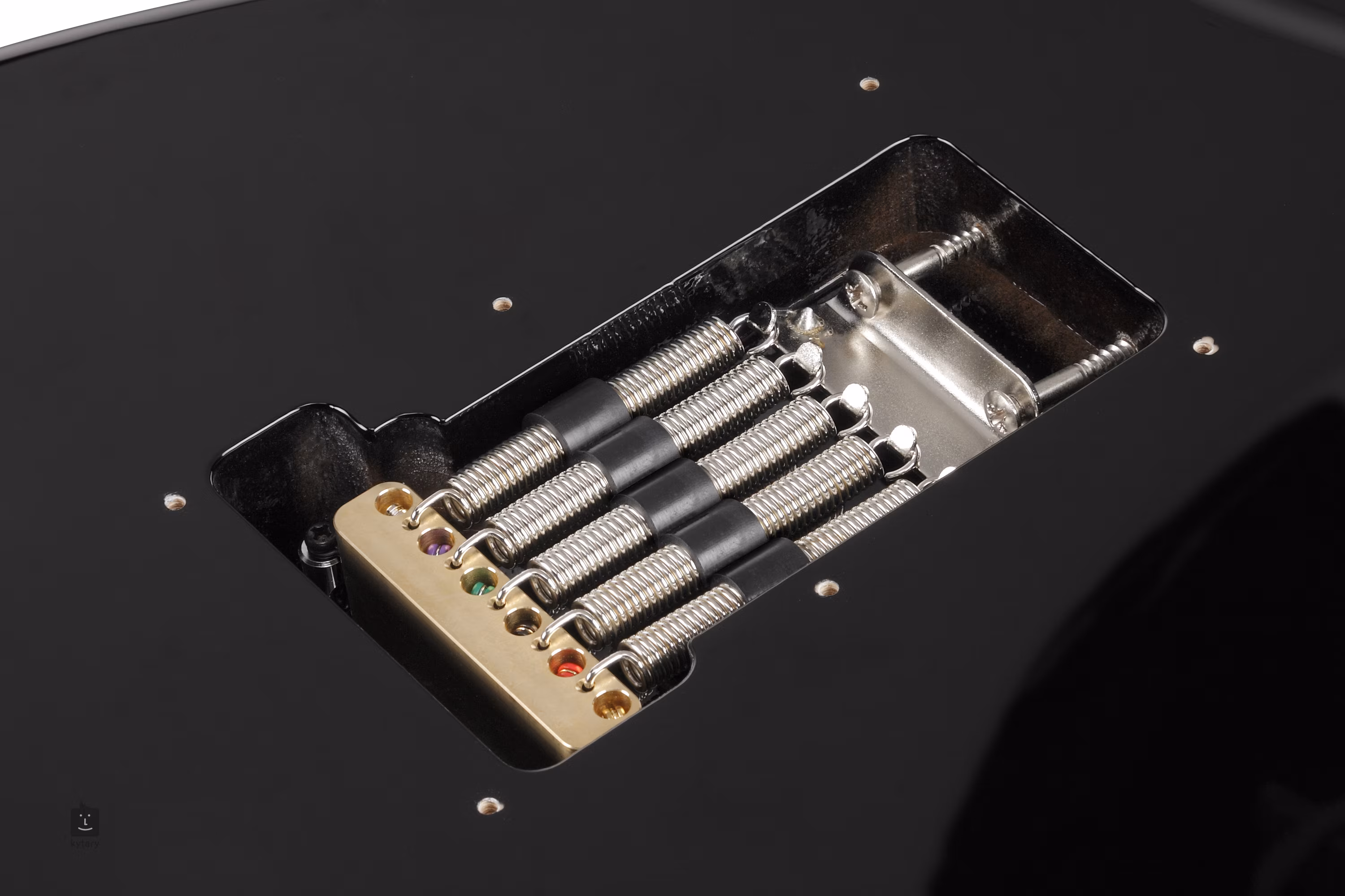 Die Saiten werden über ein imprägniertes Knochengriffbrett in einem Gotoh T1802 Tremolo und Gotoh Magnum Lock Locking Mechaniken gehalten, die auch bei häufigem Hebelbetrieb Stimmstabilität gewährleisten. Die H. A. P (Height Adjustable Post) ermöglicht es Ihnen, die Höhe des Saitenstifts einzustellen, um die ideale Saitenspannung zu erreichen.