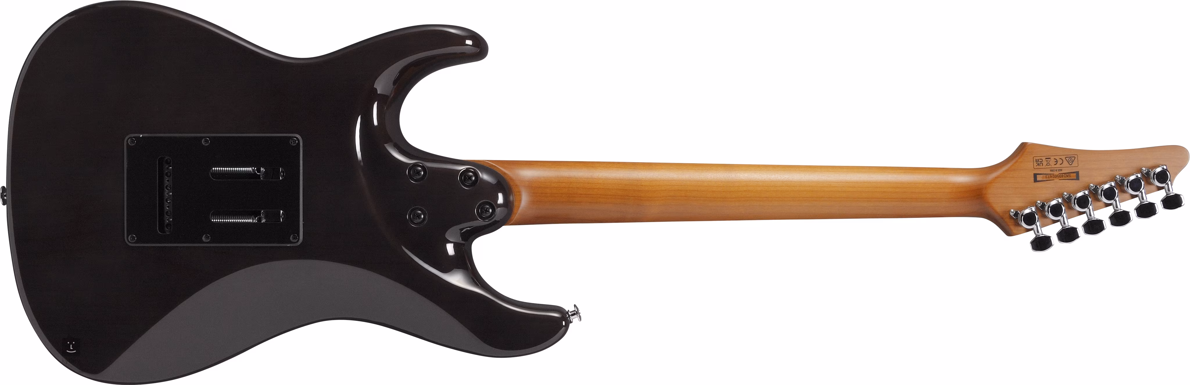 Der Erle-Korpus der AZ22S1F-TKS Standard-Gitarre ist mit einem Furnier aus geflammtem Ahorn und einer Transparent Black Sunburst-Lackierung versehen. Dank des ergonomischen Shapings der Rückseite des Korpus liegt die Gitarre perfekt in der Hand. Der geröstete Ahornhals ist mit einem Jatoba-Griffbrett mit zweiundzwanzig Jumbo-Edelstahlbünden verleimt.