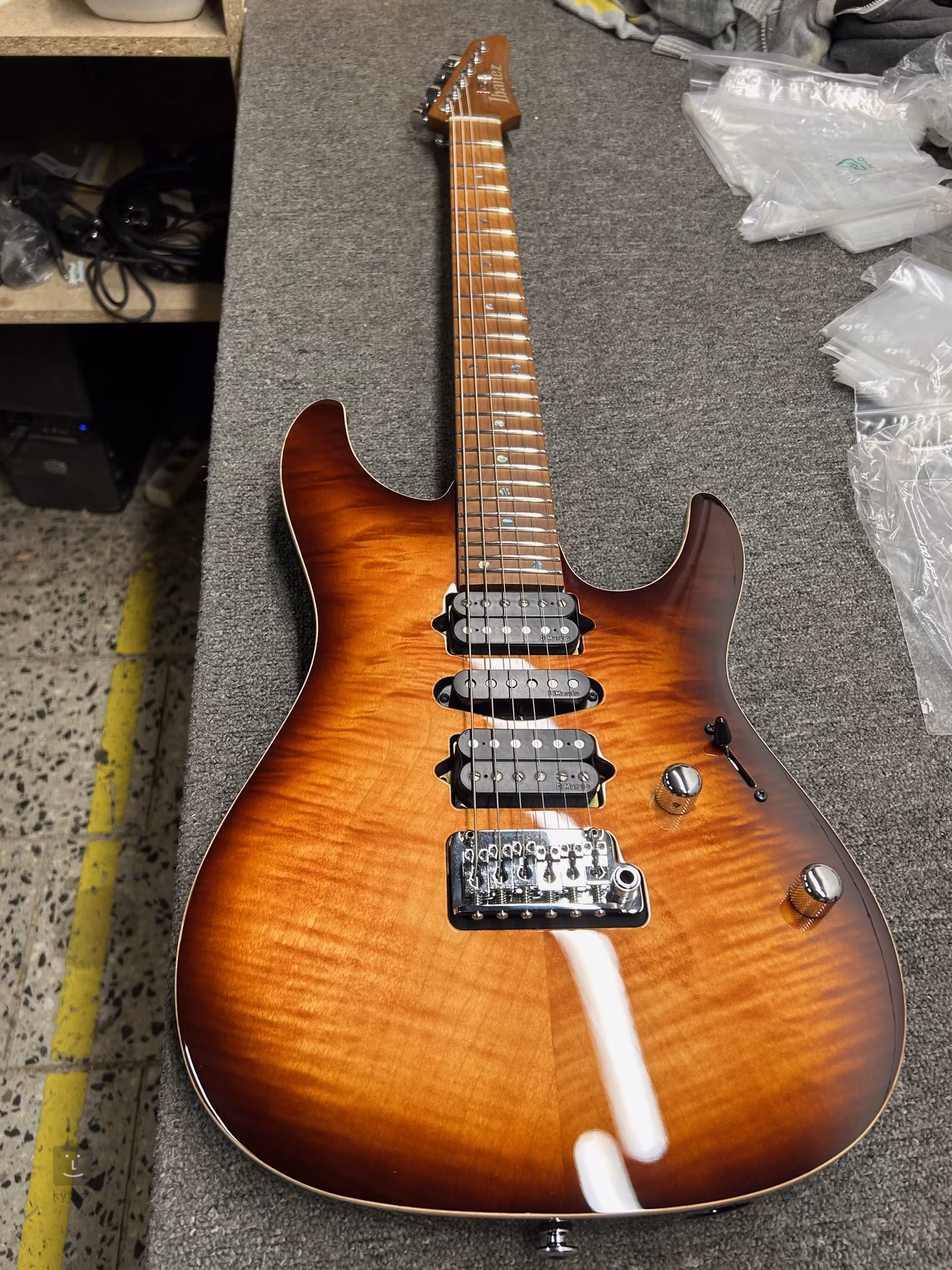 Die E-Gitarren der AZ-Serie sind eine willkommene Bereicherung des Ibanez-Katalogs. Sie bieten einen runderen Hals und den ausgewogenen asymmetrischen Korpus der Super ST-Modelle. Der Lindenkorpus der E-Gitarre AZ2407FR Brownish Sphalerite wird durch eine 4 mm starke Decke aus geflammtem Ahorn verziert. Der Ahornhals und das Griffbrett des Instruments wurden vor der Fertigstellung einer Wärmebehandlung (S-TECH-Behandlung) unterzogen, die ihre Stabilität, Wasser- und Temperaturbeständigkeit verbessert und der Gitarre gleichzeitig das Aussehen und das Spielgefühl eines gereiften/gespielten Instruments verleiht. Die bearbeiteten Bundkanten (Prestige Fret Edge Treatment), der abgerundete Halsfuß (Super All Access Neck Joint) und die 24 Jumbo-Bünde aus Edelstahl bieten Gitarristen maximalen Spielkomfort. Die lumineszierenden Punkte an der Seite sorgen für eine perfekte Orientierung auf dem Griffbrett, auch bei schlechten Lichtverhältnissen. Die Gitarre ist mit drei passiven Tonabnehmern der renommierten Marke DiMarzio mit Alnico-Magneten ausgestattet, wobei der Steg- und Hals-Humbucker (bekannte Konfiguration H-H Tone Zone und Air Norton) durch den mittleren Single-Coil True Velvet ergänzt wird. Der Klang der Gitarre kann somit aggressiv und dynamisch mit präziser Tonartikulation und hervorragendem Sustain, aber auch klar und warm sein. Dadurch eignet sie sich für eine Vielzahl von Musikgenres. Zur Standard-Klangregelung dienen Lautstärkeregler, Klangregler und ein Fünf-Wege-Tonabnehmerwahlschalter. Stabile Stimmung und schneller Saitenwechsel werden durch die verschließbaren Gotoh MG-T-Mechaniken und das Gotoh T1502S-Tremolo mit Stahlsätteln und Stahl-Tremolo-Block gewährleistet. Die Gitarre wird im Koffer geliefert. Prestige ist die zweitbeste Qualitätsreihe im Angebot der Marke Ibanez. Es handelt sich um Instrumente mit erstklassiger Verarbeitung, Klang und Spieleigenschaften, die direkt in Japan hergestellt werden. Ihr endgültiges Aussehen ist eine Kombination aus den neuesten Hightech-Fertigungsverfahren und traditioneller japanischer Handwerkskunst.