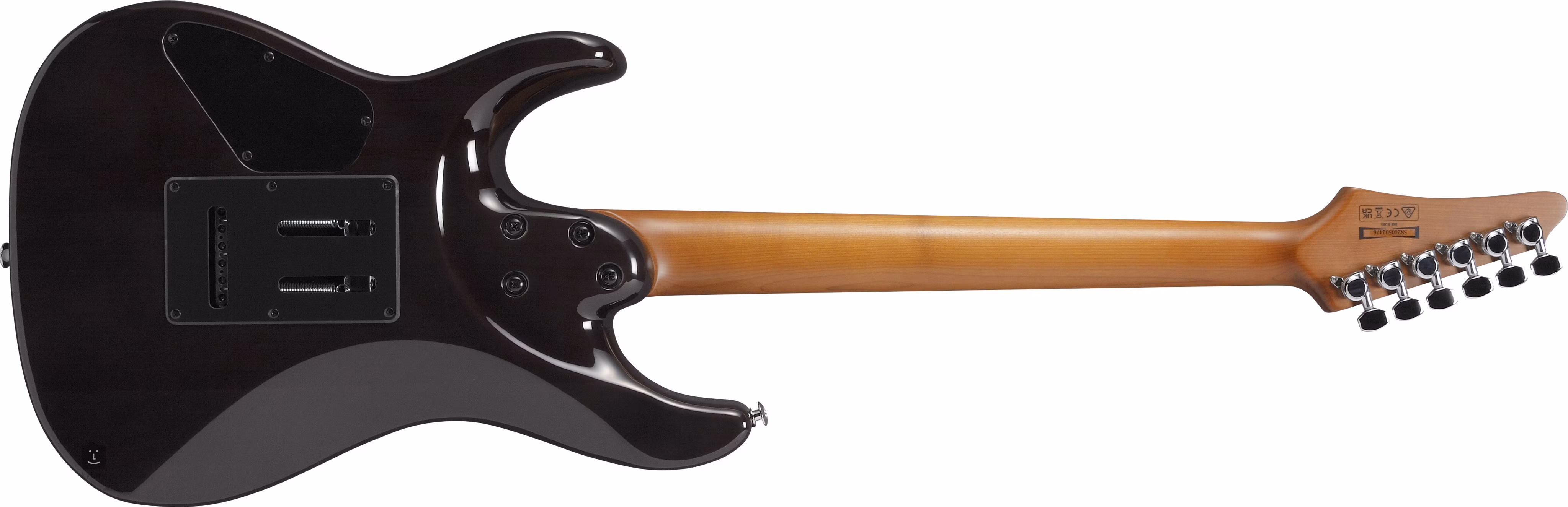 Der Erle-Korpus der AZ24S1F-TKS Standard-Gitarre ist mit einem Furnier aus geflammtem Ahorn und einer Transparent Black Sunburst-Lackierung versehen. Dank des ergonomischen Shapings der Rückseite des Korpus liegt die Gitarre perfekt in der Hand. Der Hals aus geröstetem Ahorn ist auf ein Jatoba-Griffbrett mit vierundzwanzig Jumbo-Edelstahlbünden geleimt.