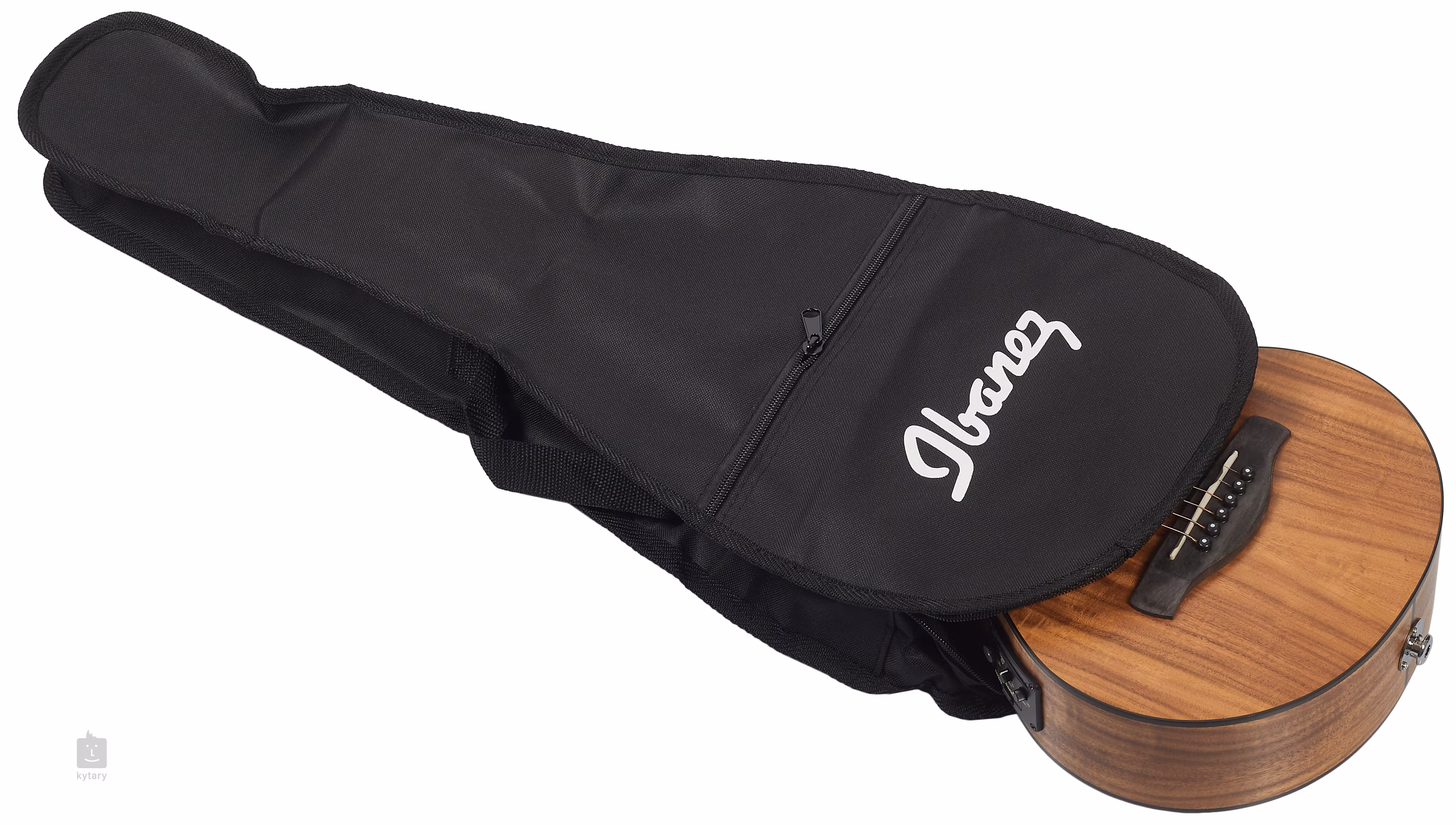Die aktive Elektronik Ibanez AEQ2U mit Zweiband-Equalizer und integriertem Stimmgerät sorgt für das Soundsystem der Ukulele. Das Instrument wird in einem Gigbag geliefert.