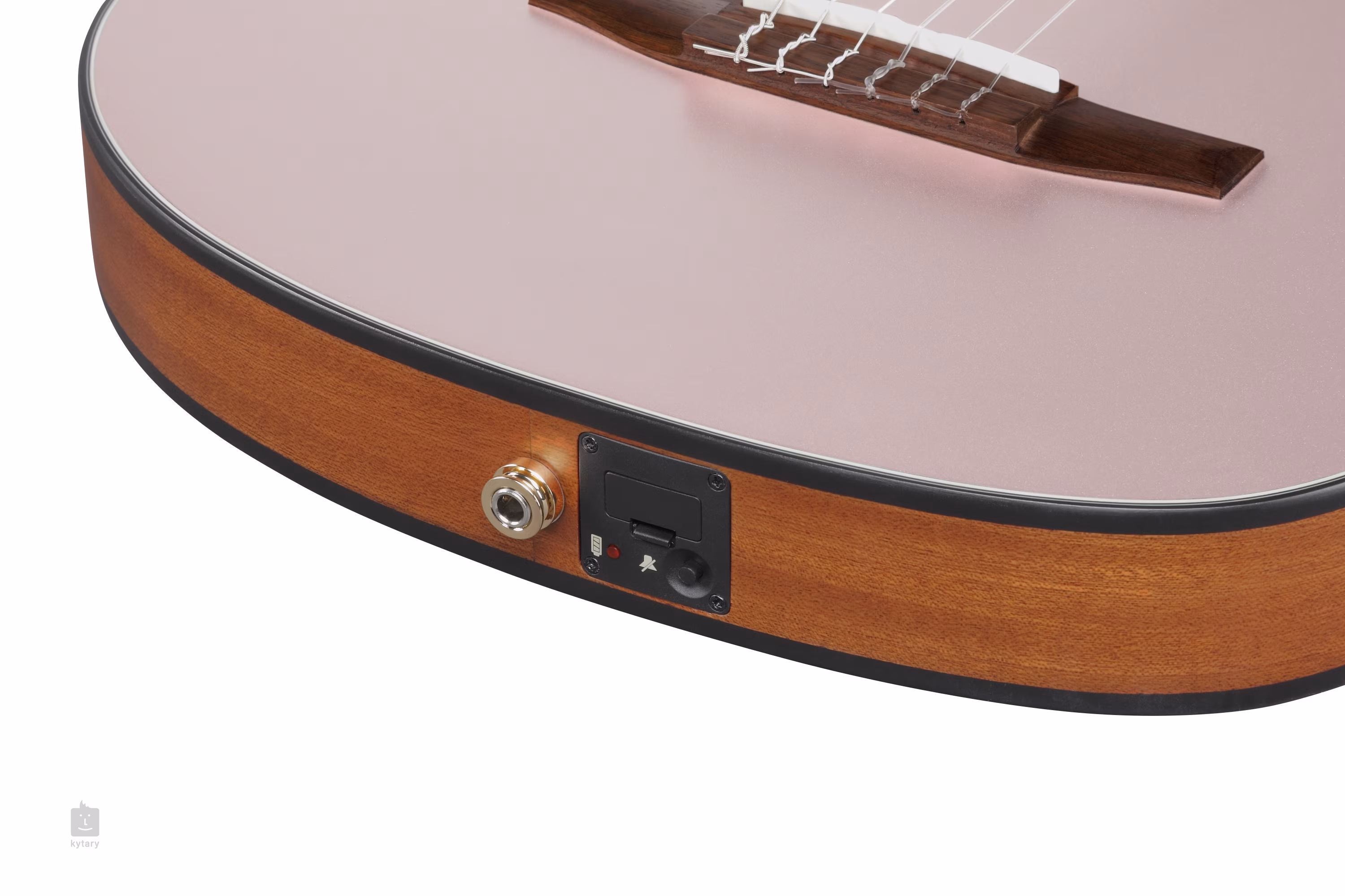 Zu den Optionen für die Klangverstärkung gehören ein Ibanez T-Bar-Piezo-Tonabnehmer und eine aktive Elektronik der Firma mit einem Zweiband-EQ, einem eingebauten Stimmgerät und einem Phaseninverter im Balg.