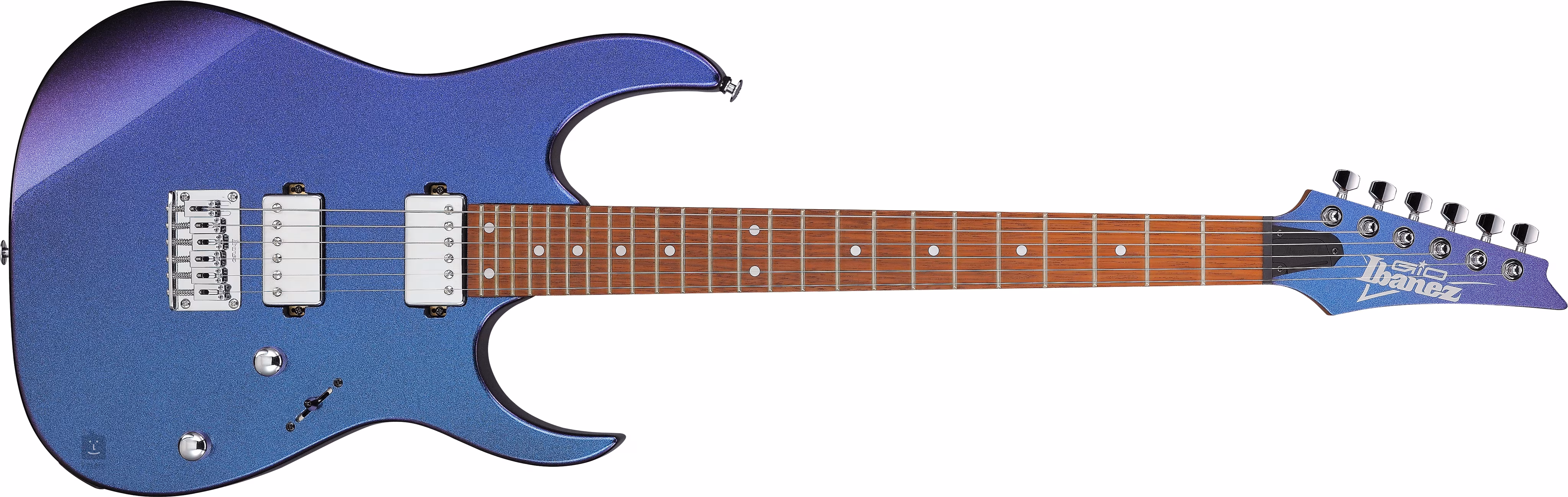 Die Ibanez GRG121SP-BMC E-Gitarre ist Teil der GIO-Serie, die erschwingliche Instrumente für Einsteiger bietet. Es handelt sich um ein Super ST RG-Modell mit einem flacheren Hals, geringerem Gewicht und markanten Korpusausschnitten, die auf die Bedürfnisse aufstrebender Rock- und Metal-Gitarristen zugeschnitten sind.