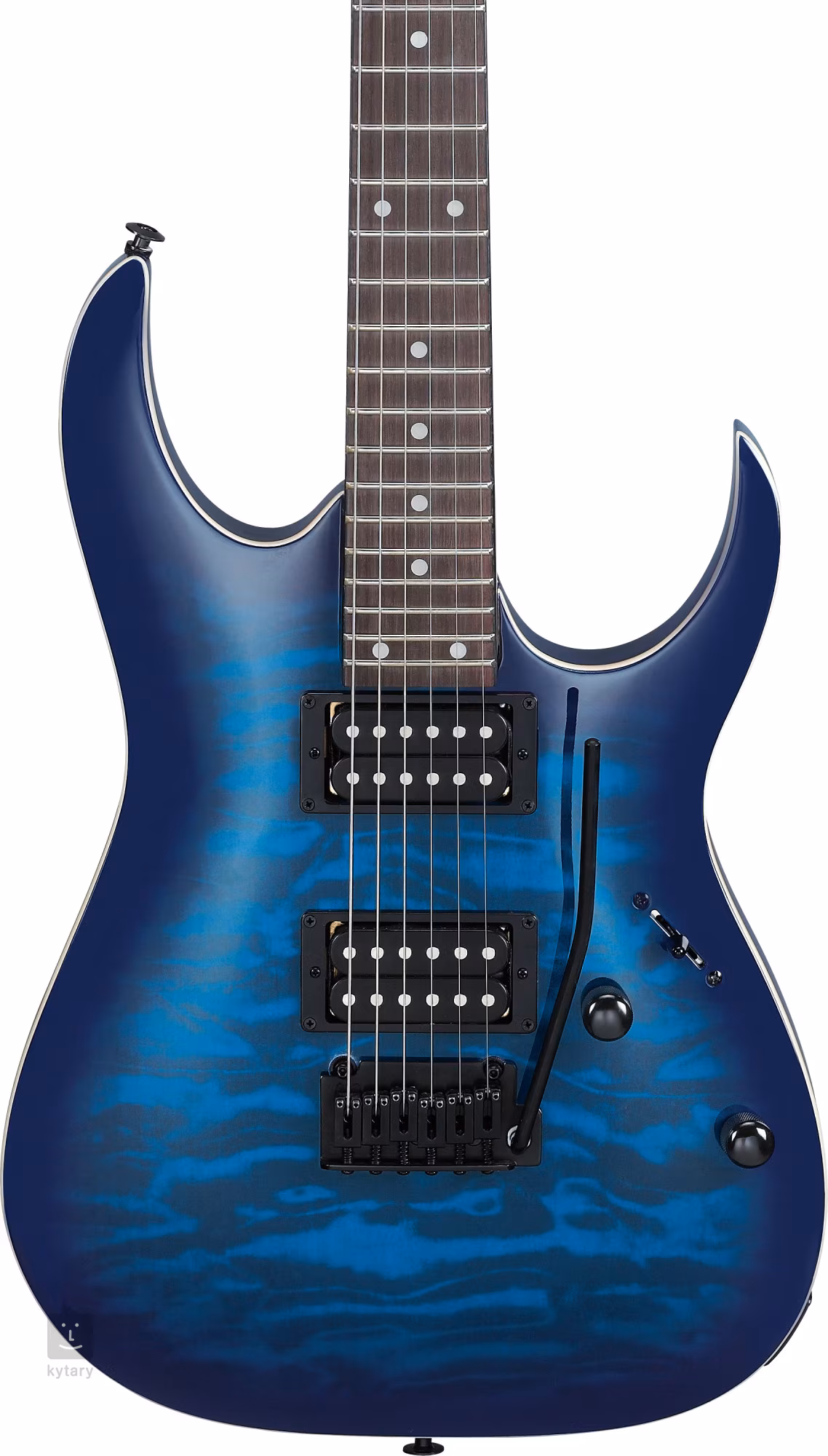 Die Ibanez GRGA120QA-TBB E-Gitarre ist Teil der GIO-Serie, die erschwingliche Instrumente für Einsteiger bietet. Sie ist ein Super ST RGA-Modell mit gewölbter Decke, flacherem Hals und markanten Korpusausschnitten, die auf die Bedürfnisse von aufstrebenden Rock- und Metal-Gitarristen zugeschnitten sind.