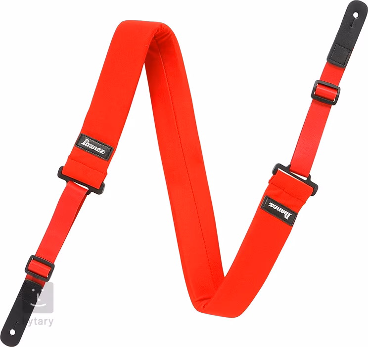 Ibanez-Gitarrengurt aus der POWERPAD-Serie mit verstellbarer Länge, Lederenden für sicheren Halt und einem gepolsterten Schulterbereich für mehr Spielkomfort.