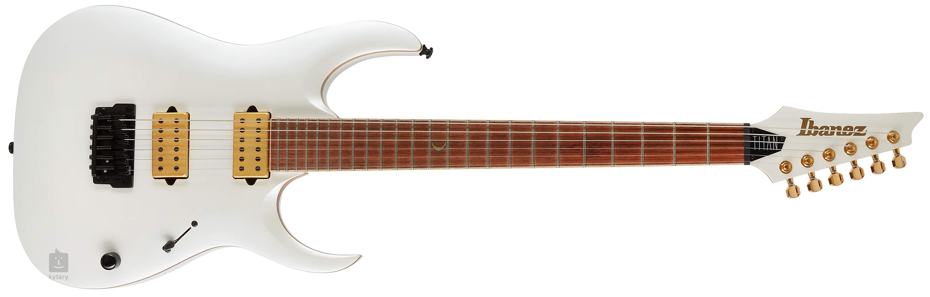 Die Stimmstabilität wird durch die Befestigung der Saiten an Gotoh-Verriegelungsmechanismen und eine solide Gibraltar-Standard-II-Kopfplatte gewährleistet, die eine optimale Schwingungsübertragung auf jede Saite ermöglicht. Das Aussehen des Instruments wird durch die perlweiße Mattlackierung, die kontrastierende schwarze Hardware und die goldfarbenen Stimmmechaniken aufgewertet.