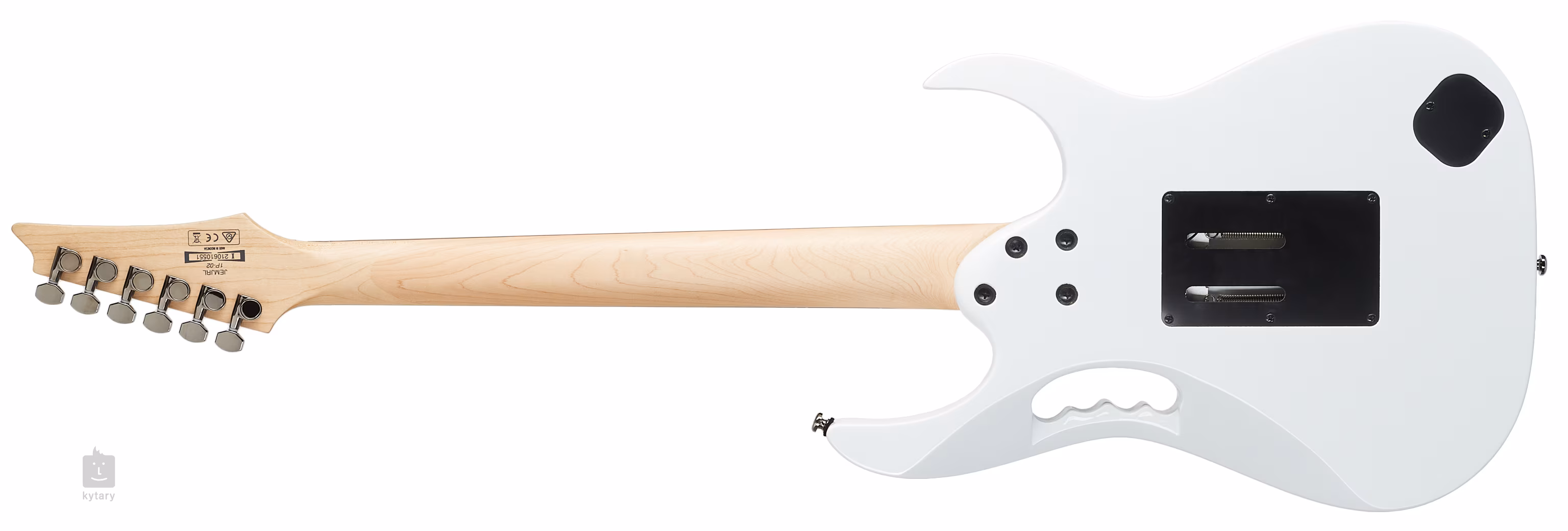 Die Kombination von zwei Quantum-Humbuckern an der Steg- und Halsposition mit einem Singlecoil in der Mitte verleiht dem Instrument die notwendige klangliche Vielseitigkeit. Zum Umschalten wird ein herkömmlicher fünfstufiger Schalter verwendet. Die Saiten sind auf der einen Seite in der hauseigenen Mechanik gelagert, auf der anderen Seite befindet sich ein Doppelturn-Tremolo, mit dem Sie Ihr Spiel mit eindrucksvollen Klangeffekten verschönern können. Die Stimmstabilität bei häufigem Gebrauch des Tremolohebels wird durch Sperren am Nullbund gewährleistet. Das weiße Schlagbrett und die Hardware in Cosmo Black ergänzen die verwendeten Grundmaterialien funktional und gestalterisch.